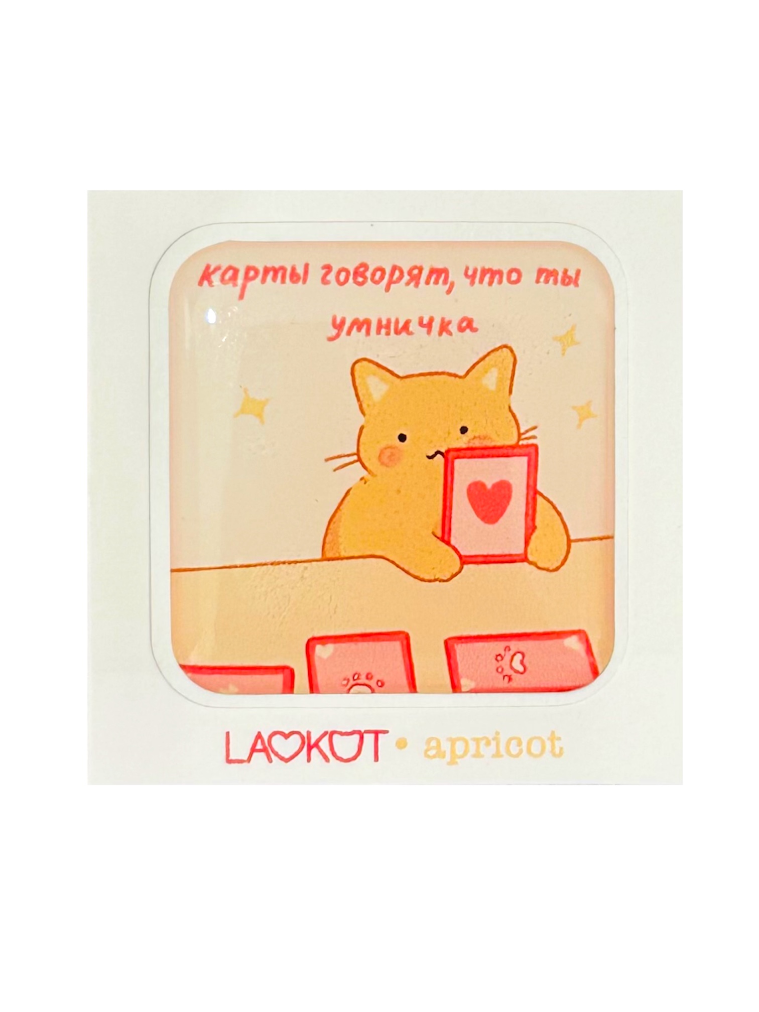 На нём изображён очаровательный котик с игривым выражением и надписью «Карты говорят, что ты умничка».