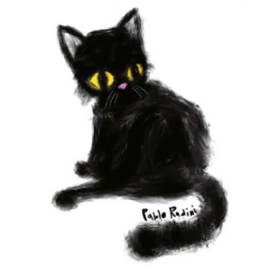 3D Стикер на телефон Pablo Radini «Чёрный кот с большими глазами», объёмный