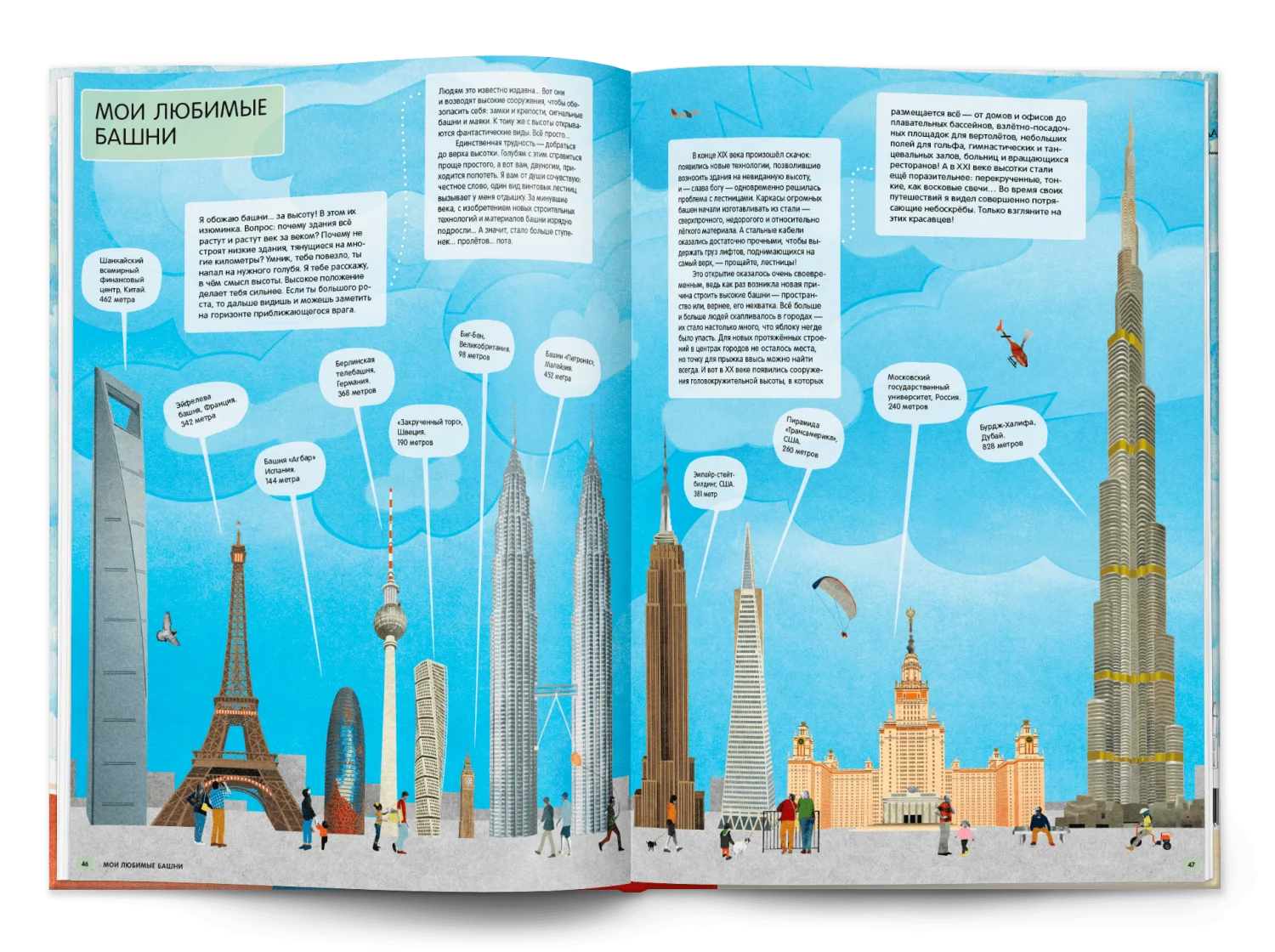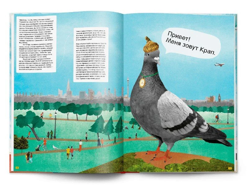 Увлекательное путешествие по главным мировым достопримечательностям от лица голубя по имени Крап. Рассказ сопровождается красочными иллюстрациями и учит наслаждаться красотой зданий самых юных путешественников. Уникальная возможность узнать о шедеврах архитектуры буквально с высоты птичьего полета. «На этих страницах вы найдёте отчёт о моих странствиях с краткими заметками об архитектурных достопримечательностях. Я всеми силами надеюсь, что к концу нашего путешествия вы не только познакомитесь с интересными зданиями, но и поймёте, что голуби способны на много такого, что вам и не снилось».