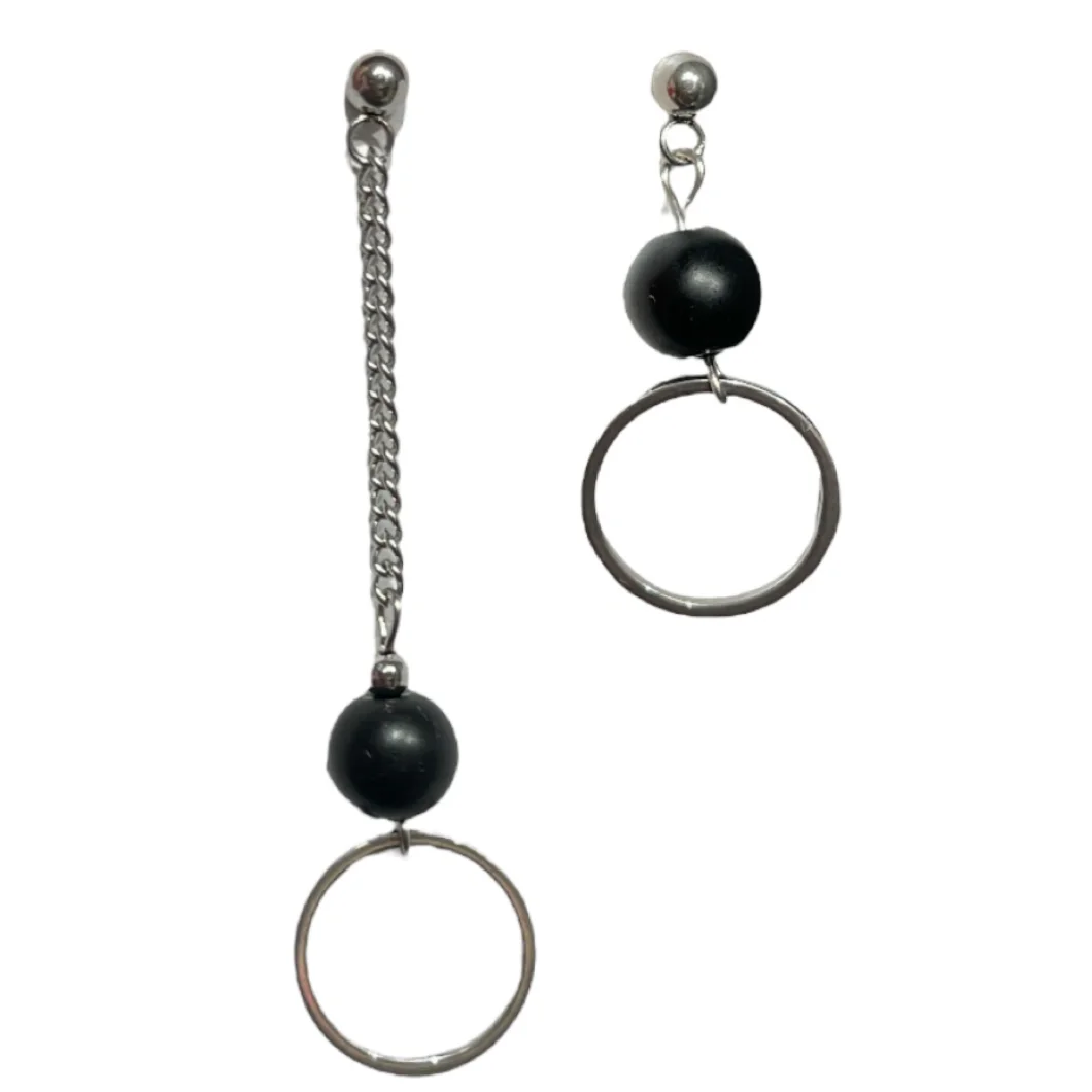 Асимметричные серьги с кольцами, ювелирная сталь, чёрные