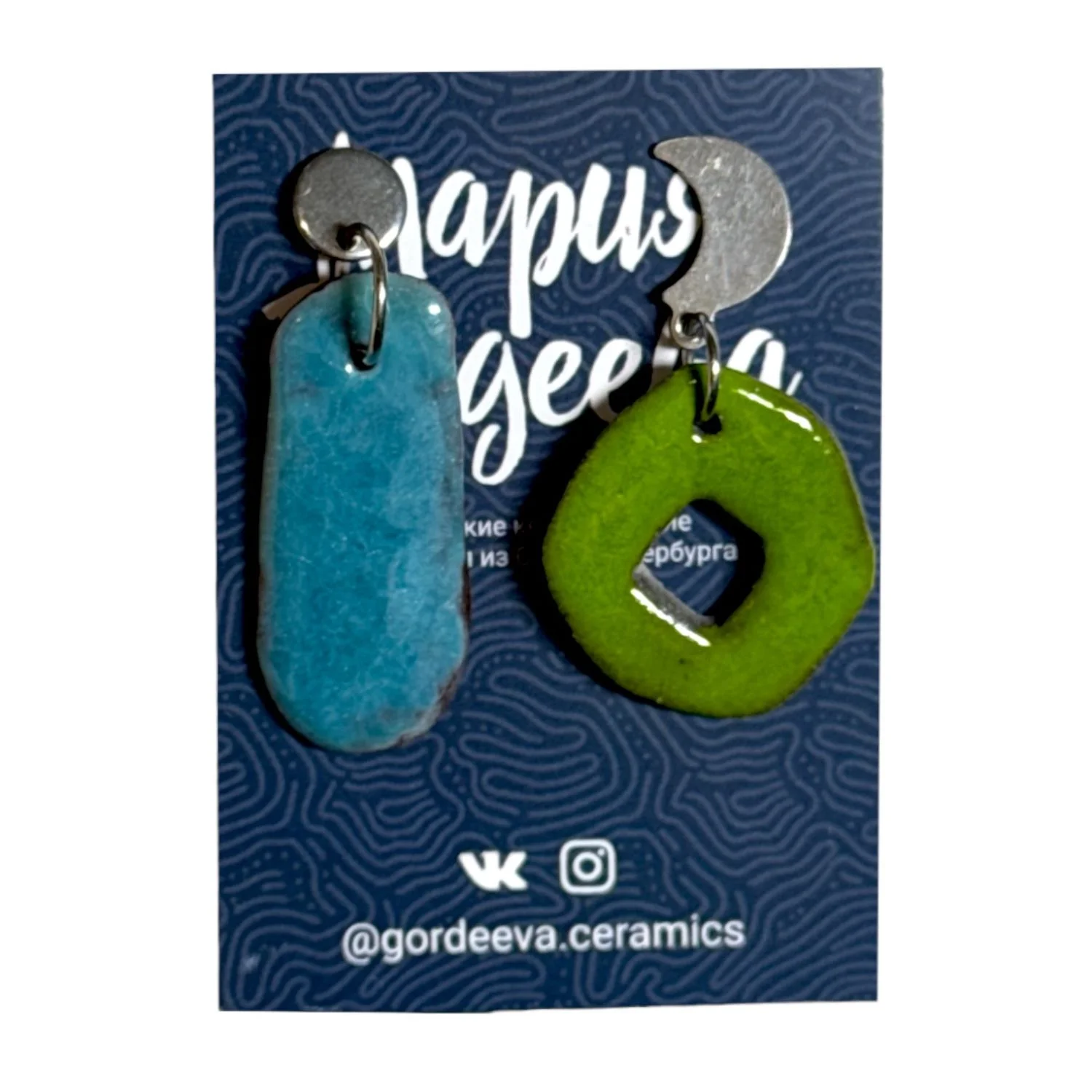 Серьги Мария Гордеева асимметричные, керамика, голубые с зелёным