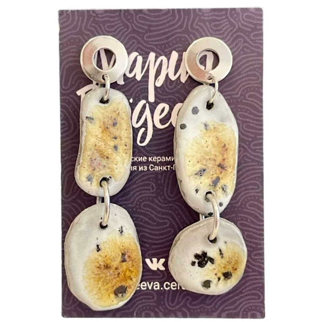 Керамические асимметричные составные серьги от петербургского бренда Gordeeva ceramics.