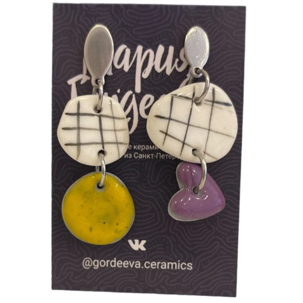 Керамические асимметричные составные серьги от петербургского бренда Gordeeva ceramics.