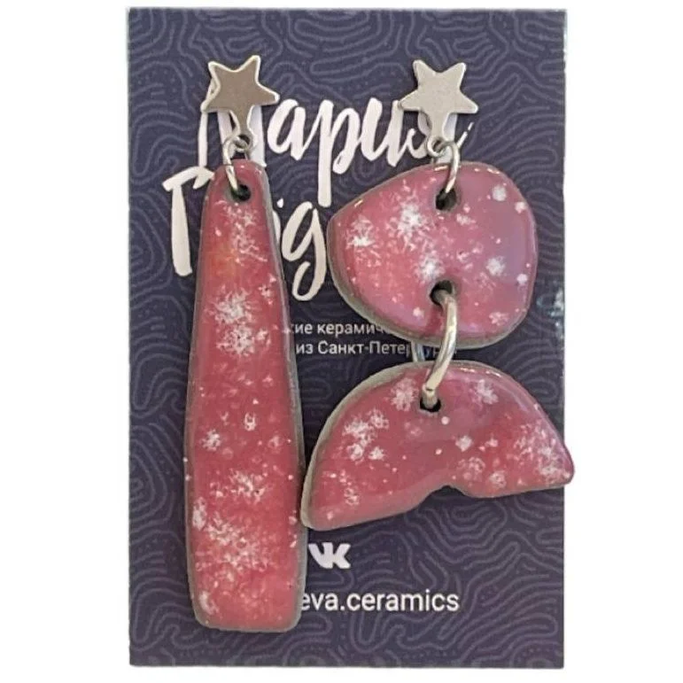 Серьги Мария Гордеева асимметричные составные, керамика, тёмно-розовые