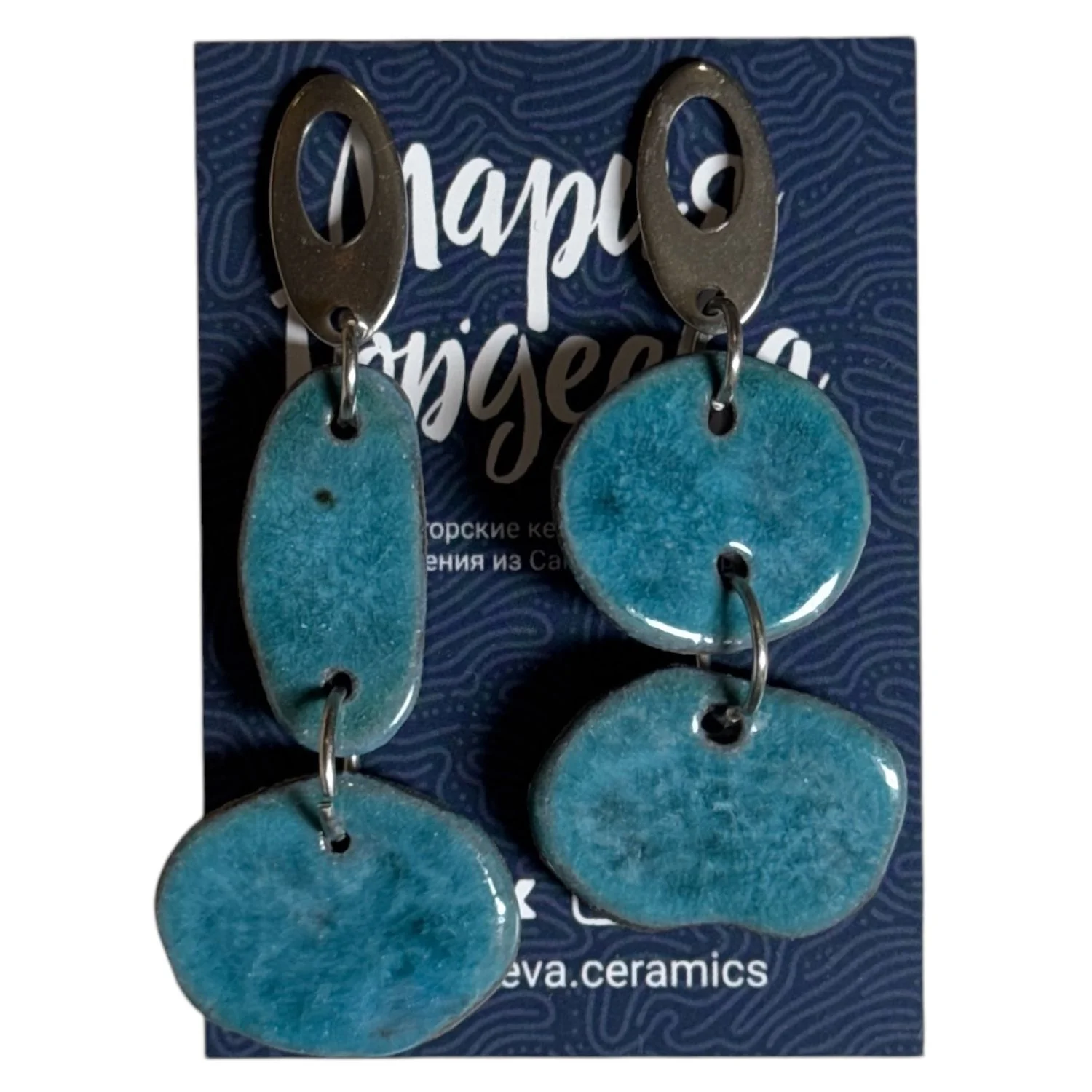Серьги Мария Гордеева ассиметричные составные, керамика, лазурные