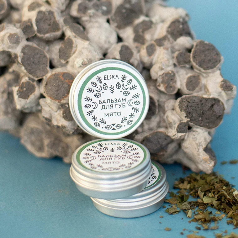 Натуральный бальзам для губ от ELSKA cosmetics в удобной красивой металлической баночке.
