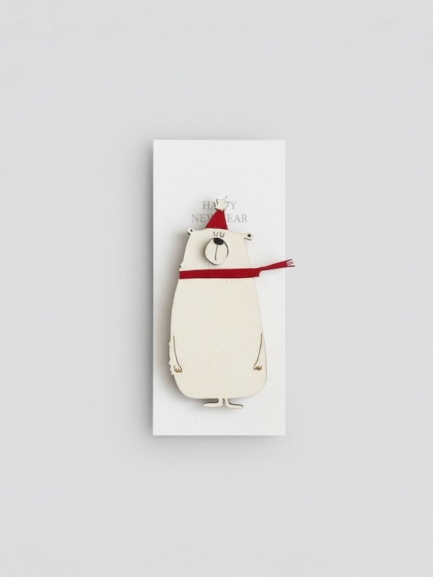 Бирка для подарка на прищепке «Белый медведь в шарфе», BOE