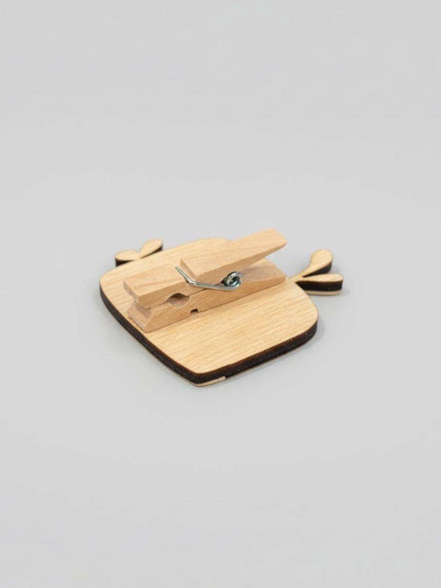 Деревянная объёмная бирка для подарка с прищепкой сзади станет милым дополнением к упаковке подарка.