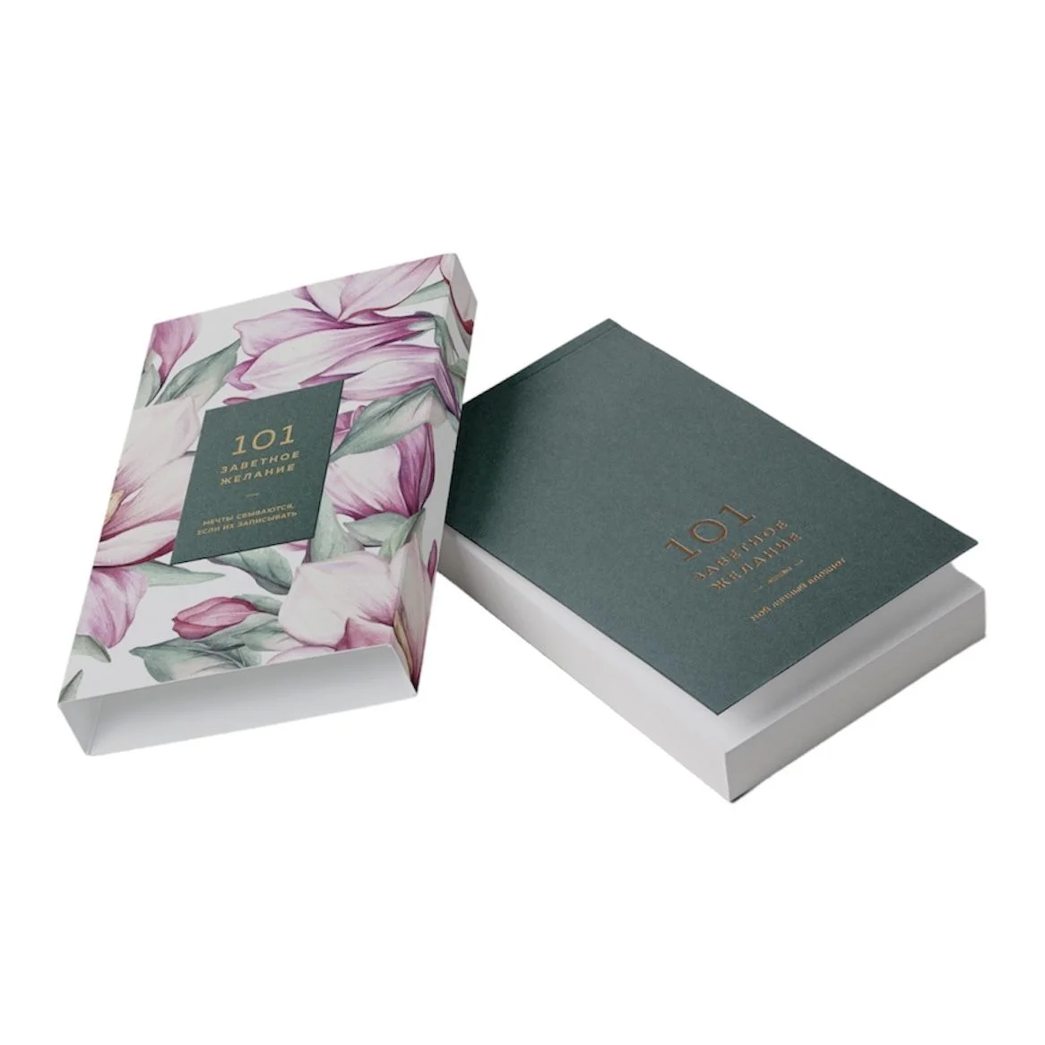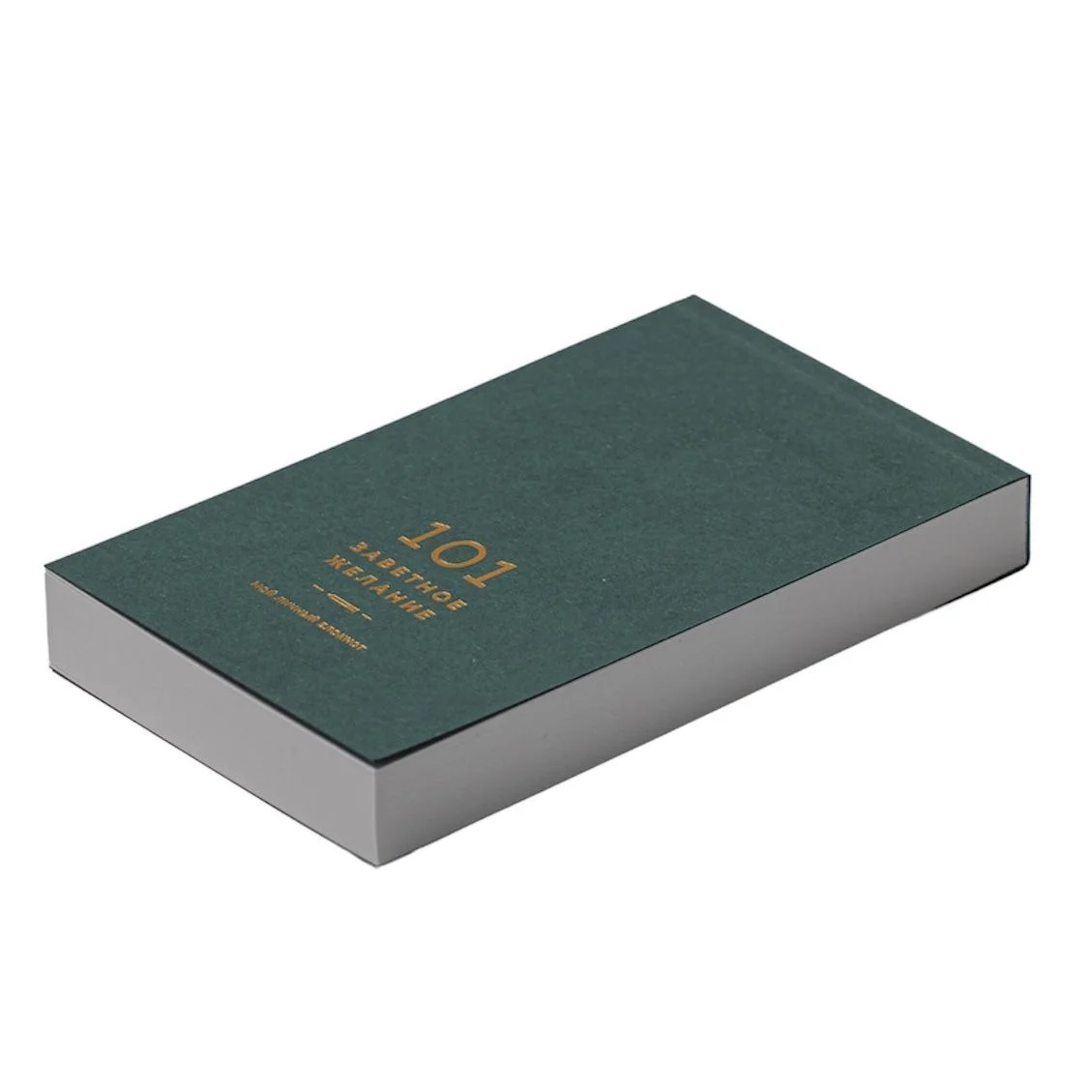 Блокнот «101 заветное желание» №1 - карманный блокнот в подарочной обертке, созданный специально для записи ваших желаний.  Он имеет однотонную обложку с яркой красочной папкой-пеналом из картона. Внутри блокнота находится 101 страница - по одной на каждое ваше желание. Листы нелинованные, что позволяет вам свободно выразить свои мысли и идеи.  Обратите внимание, что блокнот небольшого размера, он легко помещается в ладони. Бумага, используемая в блокноте, натуральная и непрозрачная, с немного шершавой текстурой, что придает ей особый шарм. Она также является одной из самых экологичных бумаг в мире.  Обложка блокнота выполнена из цветной дизайнерской бумаги премиального качества, которая приятна на ощупь. Обертка-пенал из запечатанного картона с soft-touch поверхностью защищает блокнот от повреждений и придает ему элегантный вид. Блокнот произведен в России.