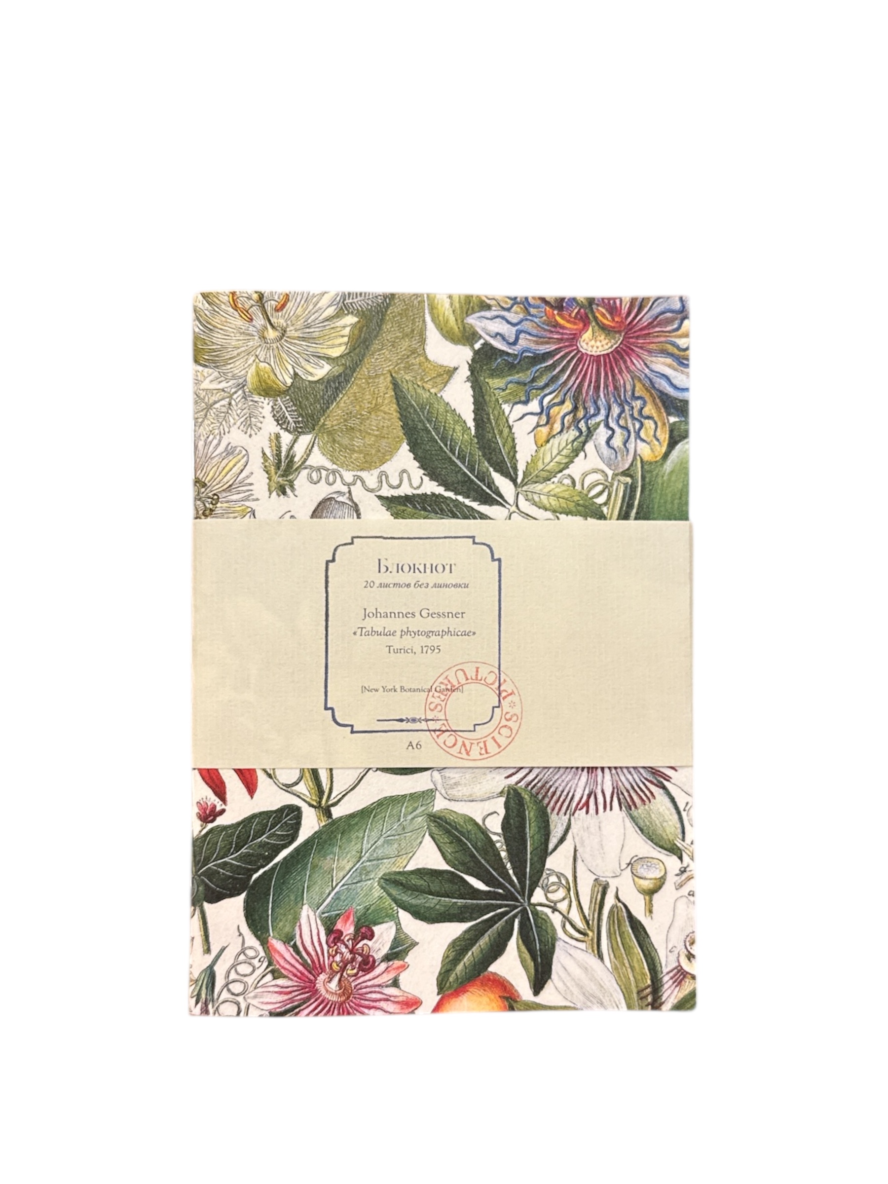 Стильный и компактный блокнот формата А6 с изображением маракуйи и цветов.