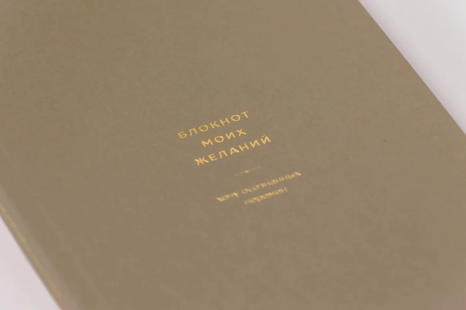 Блокнот моих желаний №2 - помощник для тех, кто ищет ответы на вопросы и способы записей своих желаний. В нем все продумано до мелочей. Этот блокнот не просто для записи желаний, он помогает их выявить, выступая инструментом для самоанализа и самопознания. В нем содержатся вопросы, подсказки и упражнения, чтобы лучше понять, что действительно важно в жизни. Он не является ежедневником или планировщиком. В нем нет планов достижения целей или волшебных техник исполнения желаний. Главная задача блокнота - помочь вам лучше понять себя и свои истинные желания. Блокнот состоит из трех частей: анализ прожитого года, осознание своих ценностей и только после этого - запись желаний. Вы можете заполнять блокнот в любое время и в любой последовательности. Блокнот имеет книжную сшивку и клеевой переплет. Обратите внимание: обложка блокнота не жесткая! Бумага - высококачественная чисто целлюлозная дизайнерская бумага натурально-белого цвета. Поверхность не глянцевая, листы немного просвечивают. Обложка - цветная дизайнерская бумага премиального качества с приятной на ощупь поверхностью. Используются актуальные цвета из новой коллекции оттенков. Весь текст в блокноте напечатан золотой краской. Произведено в России.