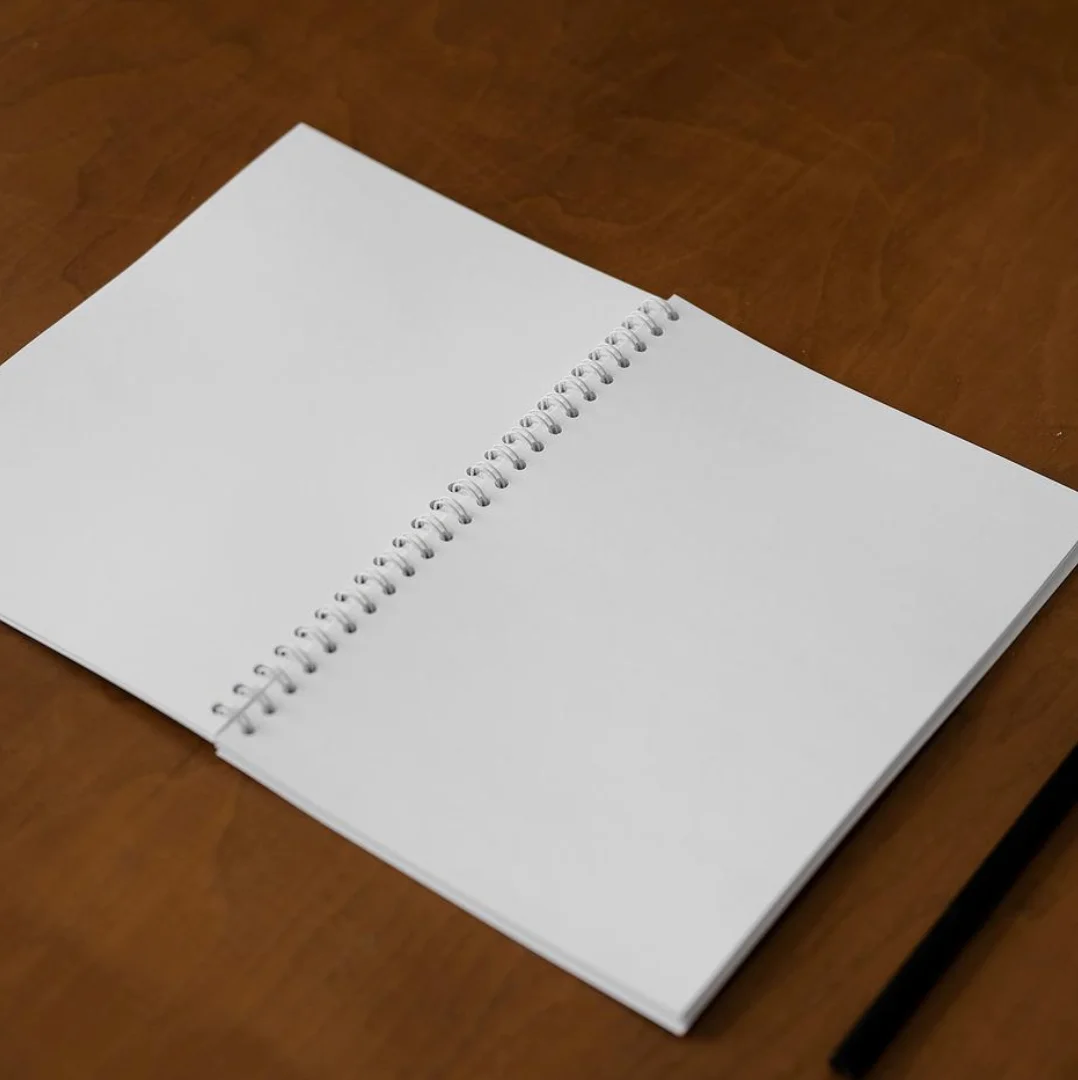 Наполнение: 50 листов (то есть 100 страниц); белые нелинованные листы; материал: бумага 80 гр. ( ~ как для принтера).