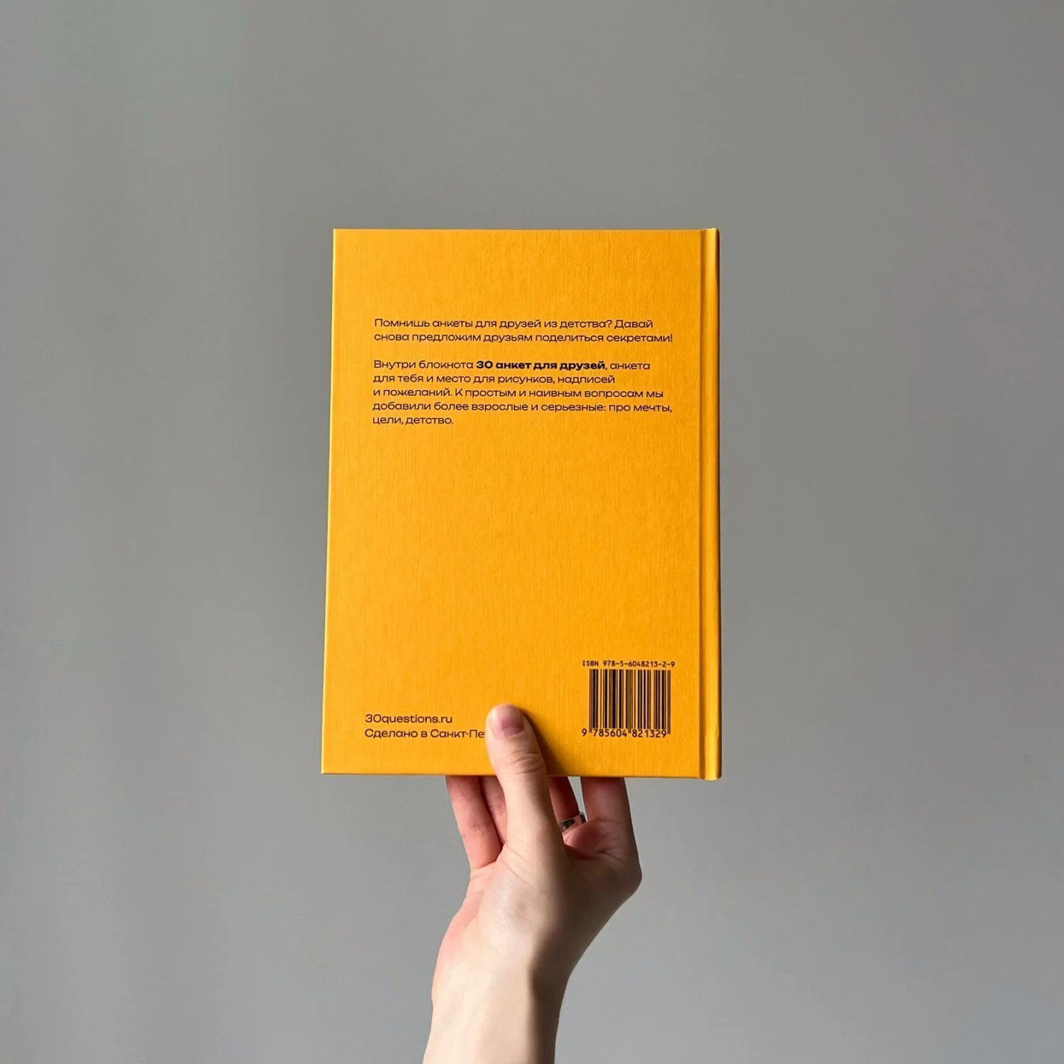Блокнот в твердой обложке «30 вопросов для друзей», А5, жёлтый
