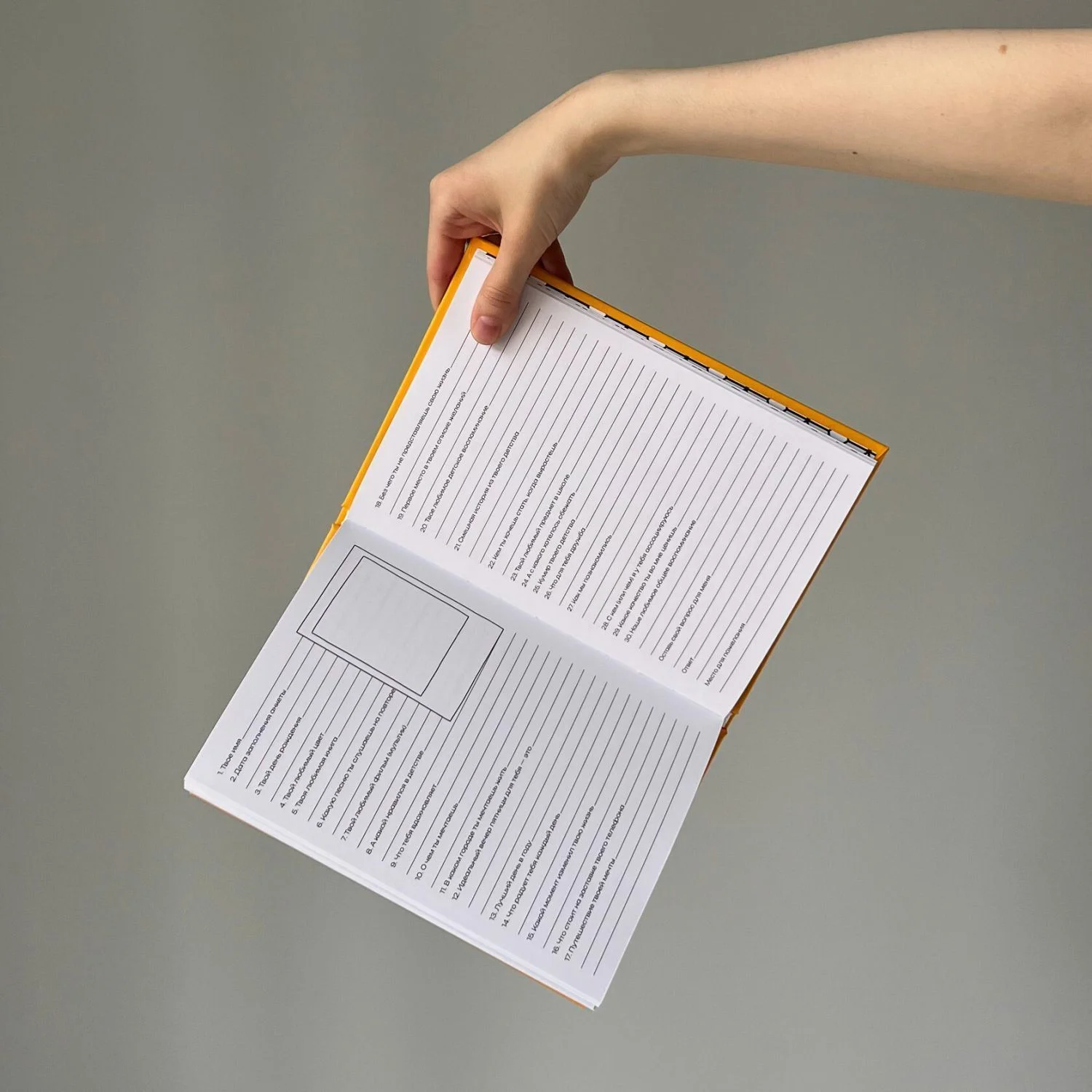 30 анкет для друзей, анкета для хозяина блокнота и место для совместного творчества. В каждой анкете есть место для фото или рисунка.