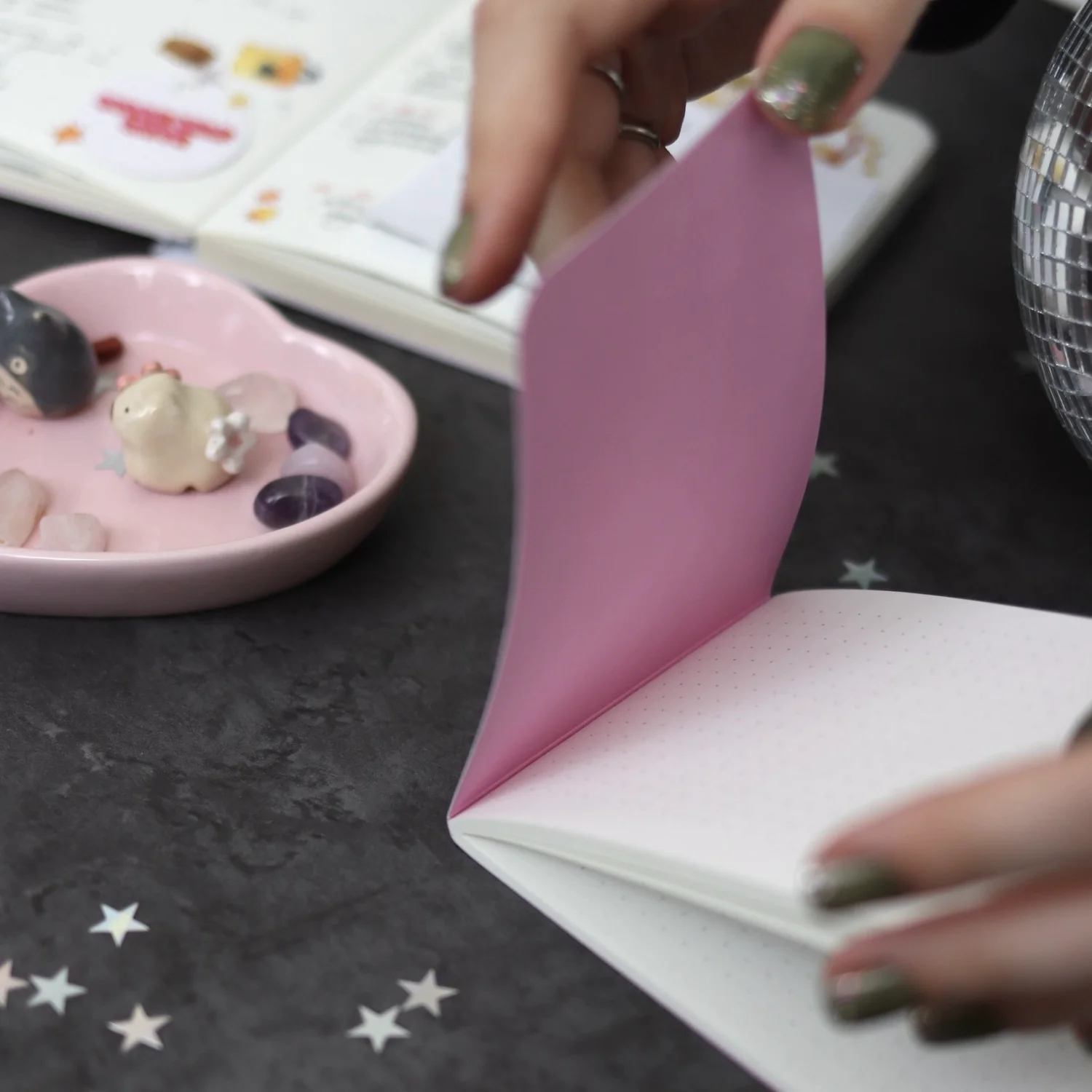 Блокнот с волшебной наощупь текстурой софт-тач на обложке и 30 листами в точку внутри. Подойдёт для микро разворотов и списков дел.