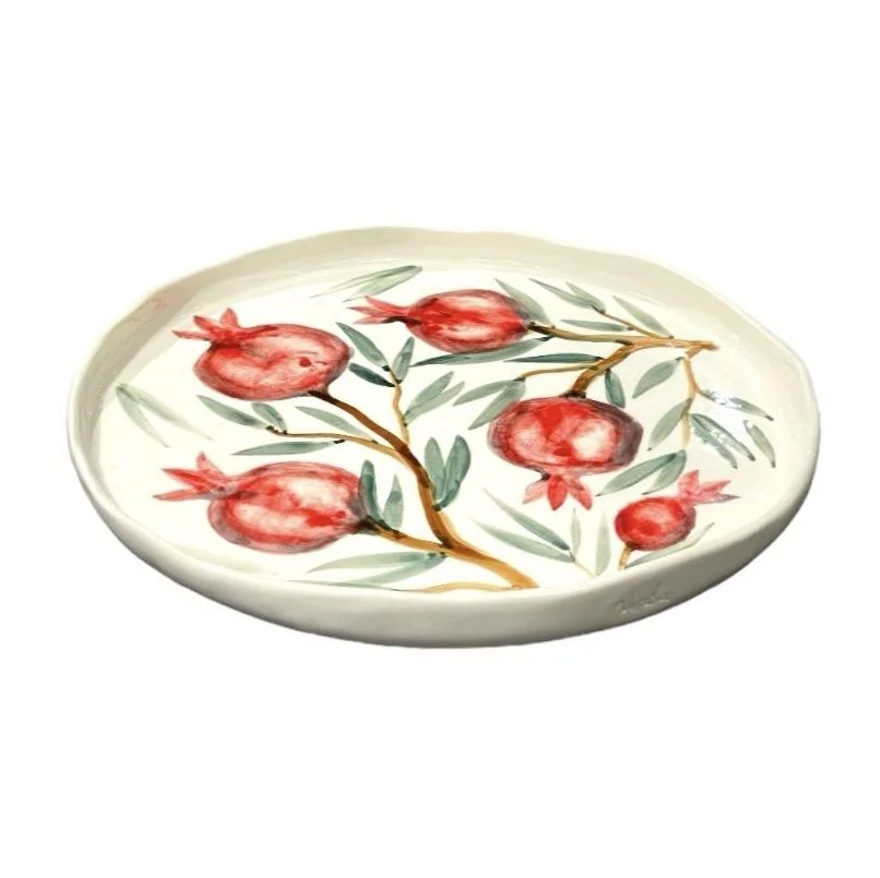 Блюдо «Гранаты» с ручной росписью – это стильное и функциональное изделие, которое станет отличным дополнением к вашей коллекции посуды. Она изготовлена из высококачественных материалов, которые выдерживают высокие температуры, что позволяет мыть ее в посудомоечной машине без вреда для росписи.