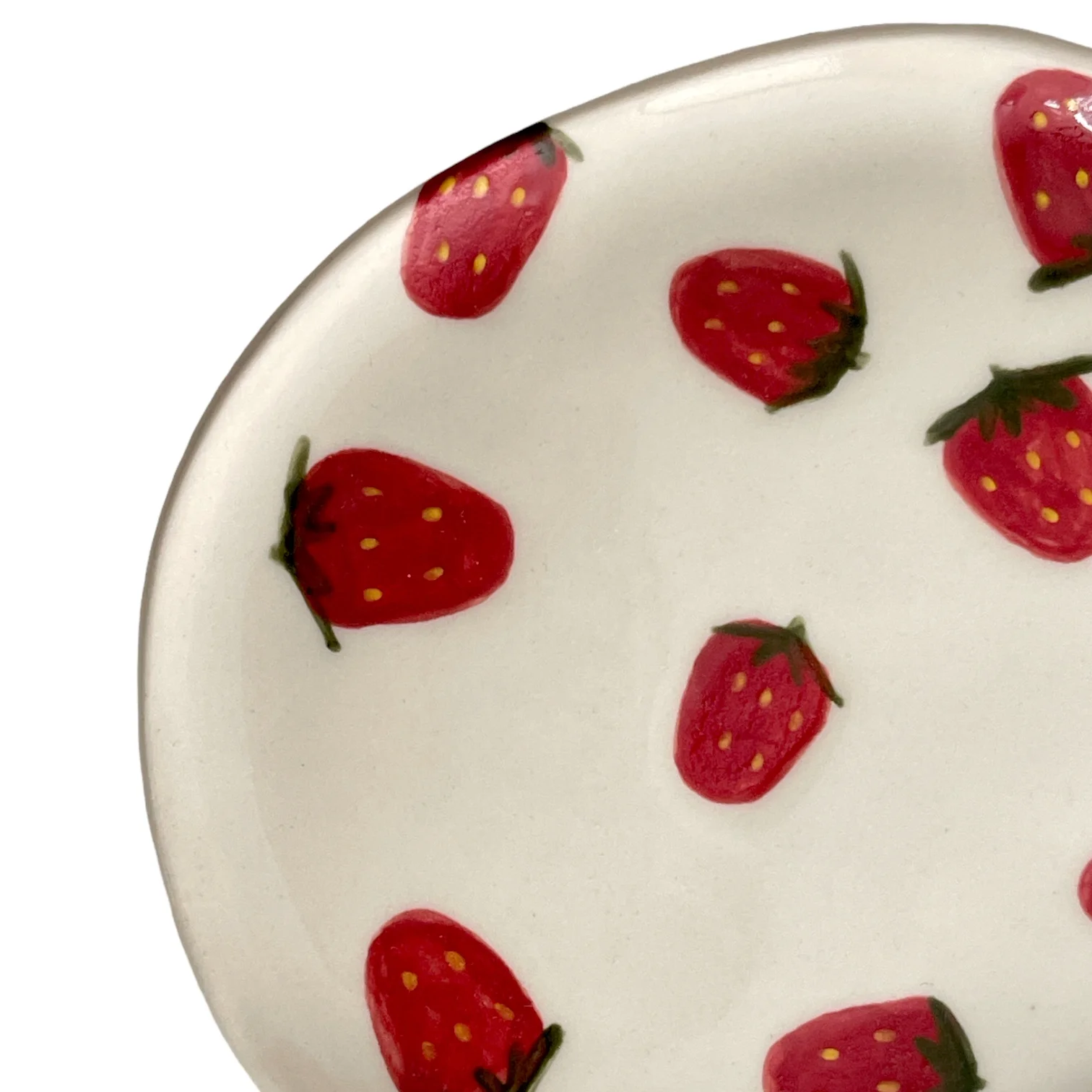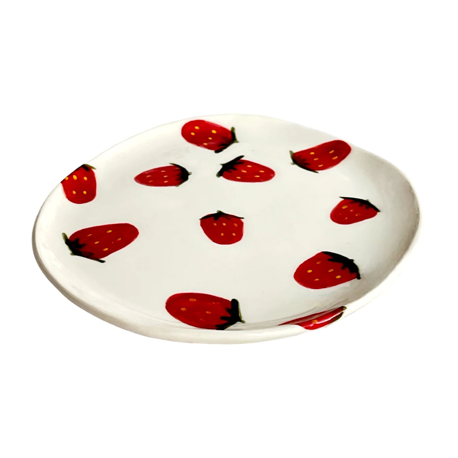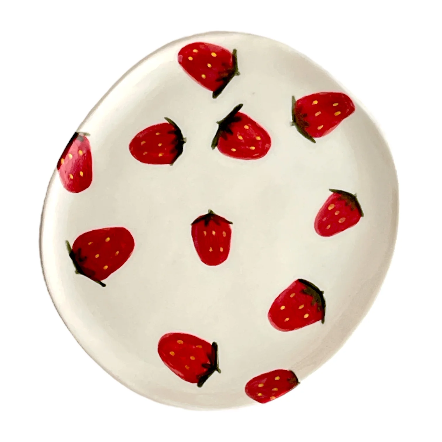 Блюдце круглое ручной работы Клубнички, керамика, 17 см