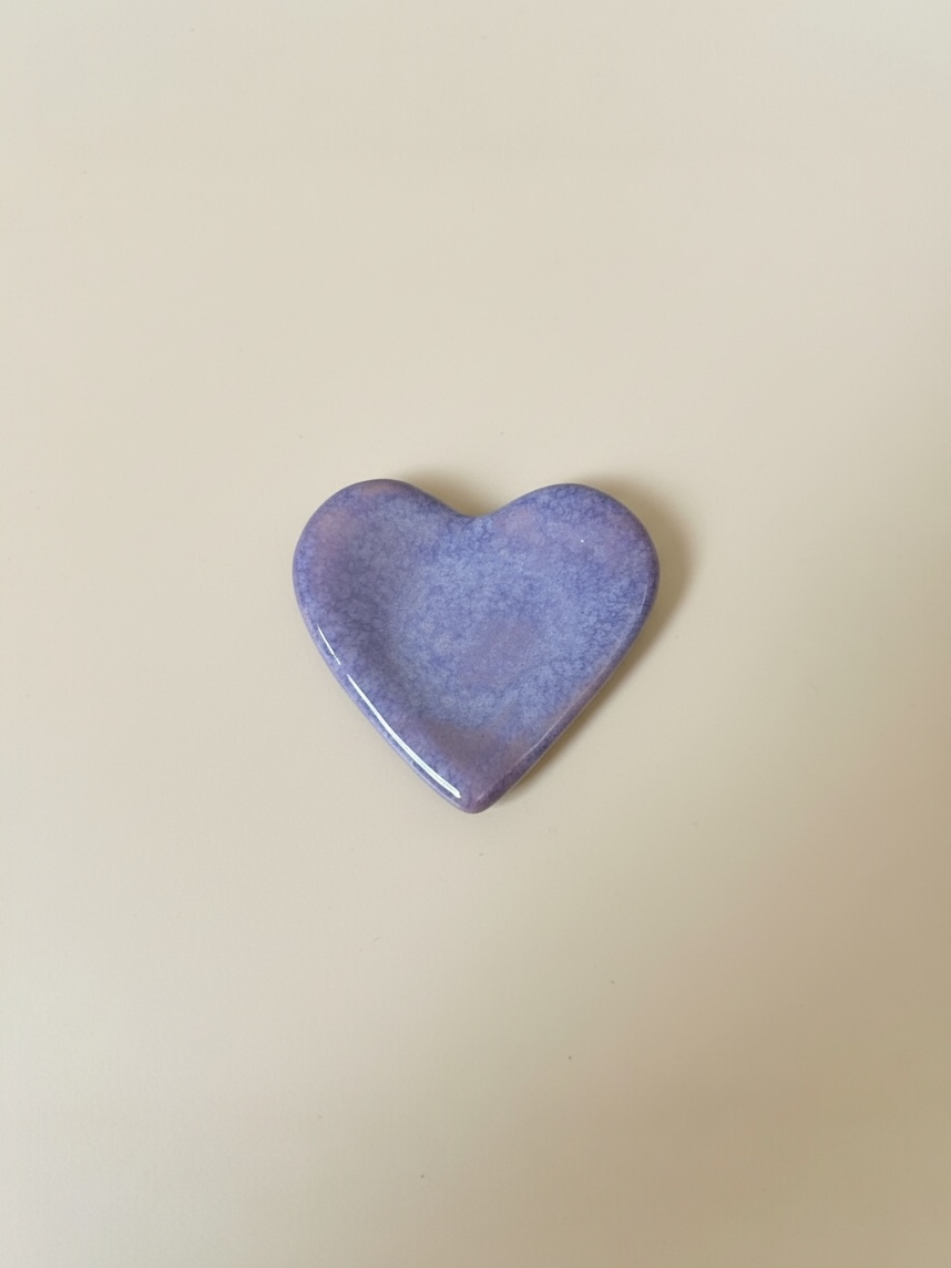 Это уникальное керамическое блюдце в виде сердечка выполнено вручную, покрыто глазурью фиолетового цвета.