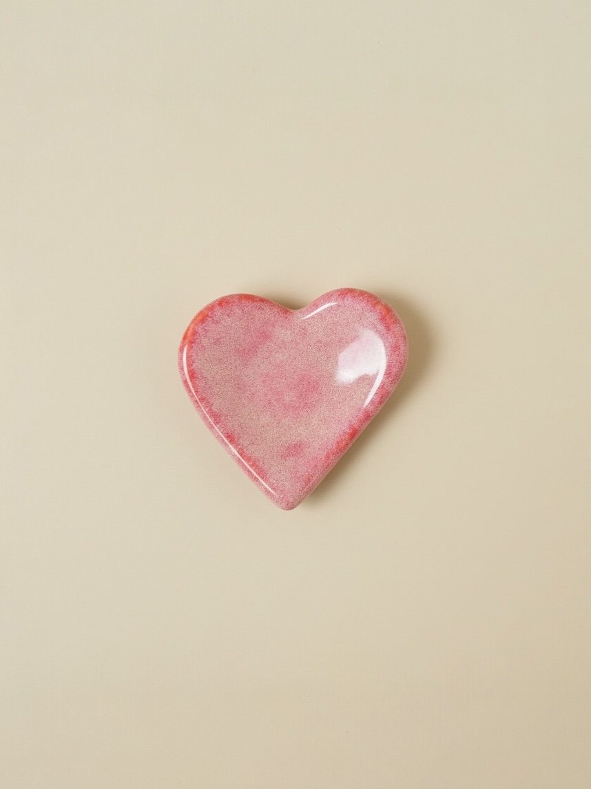 Это уникальное керамическое блюдце в виде сердечка выполнено вручную, покрыто глазурью малинового цвета.