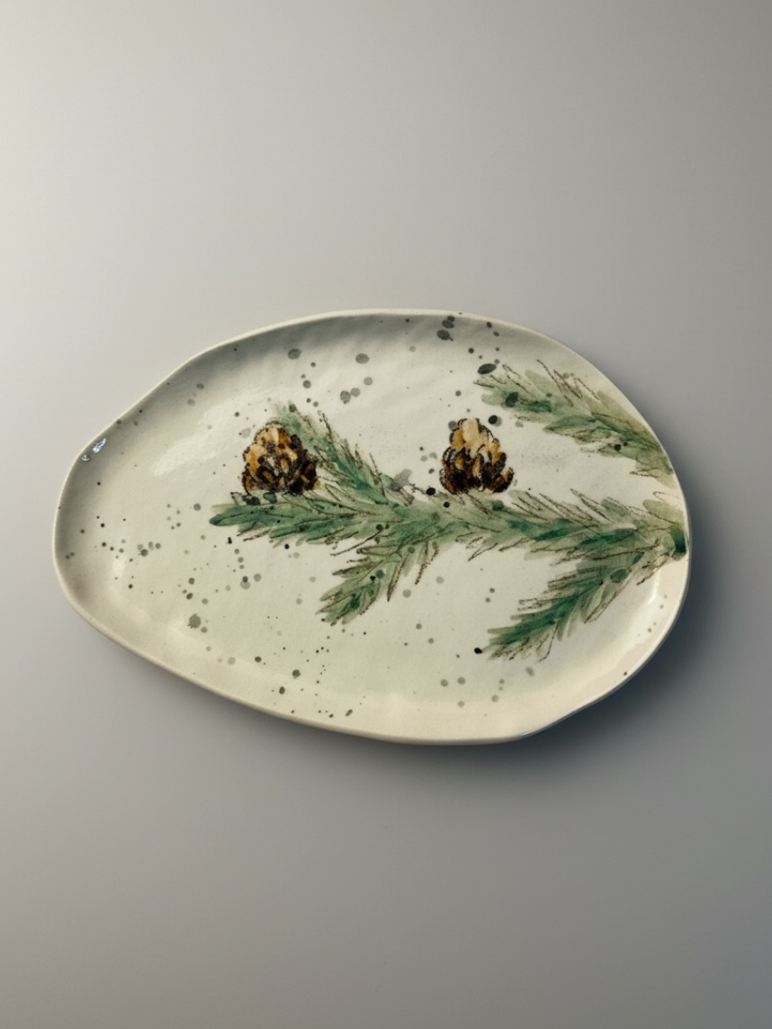Блюдце ручной работы с еловыми веточками – это стильное и функциональное изделие, которое станет отличным дополнением к вашей коллекции посуды.