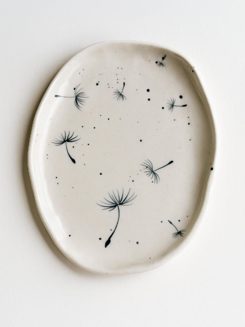 Блюдце ручной работы Одуванчики, керамика, 14 см