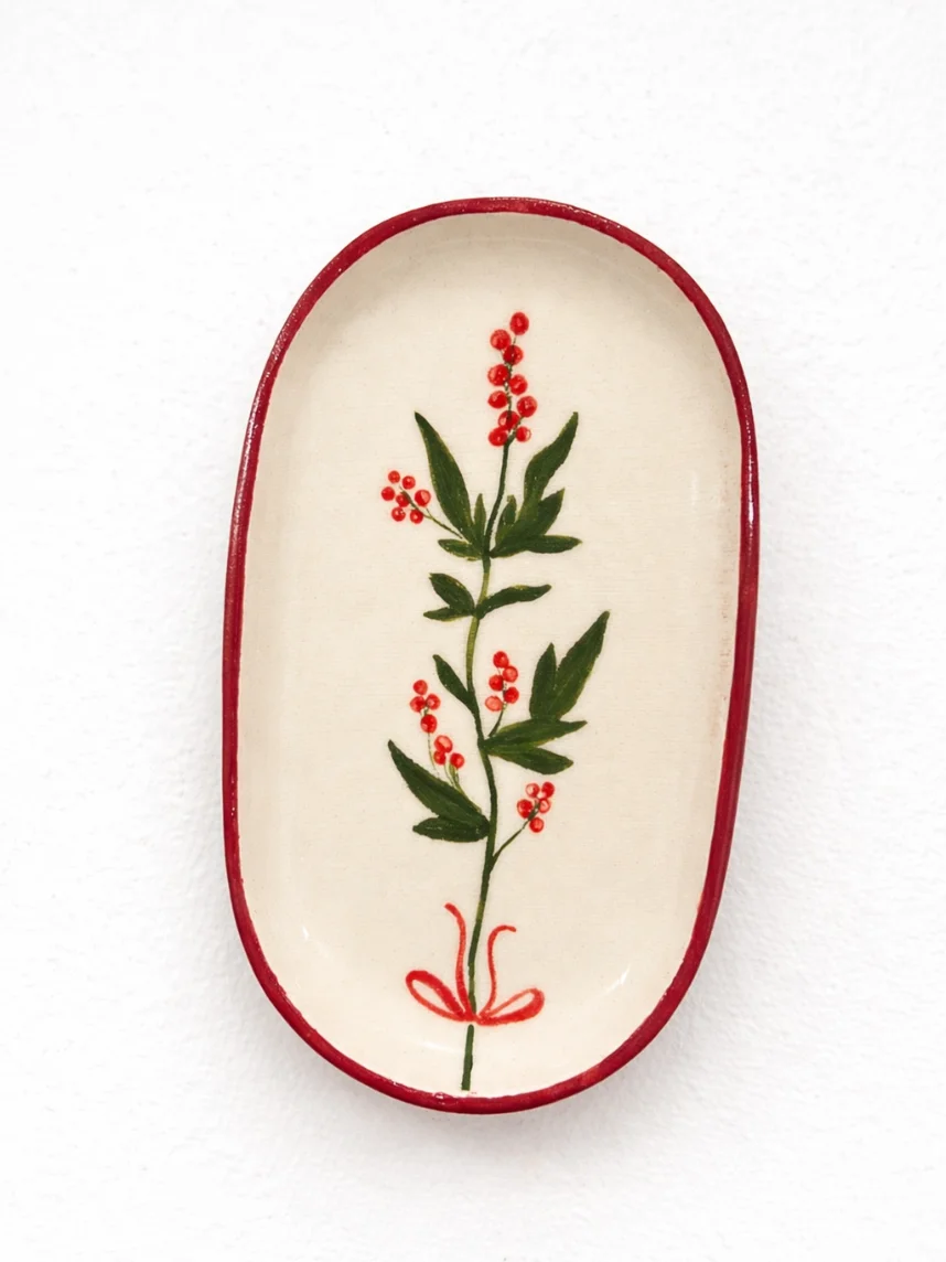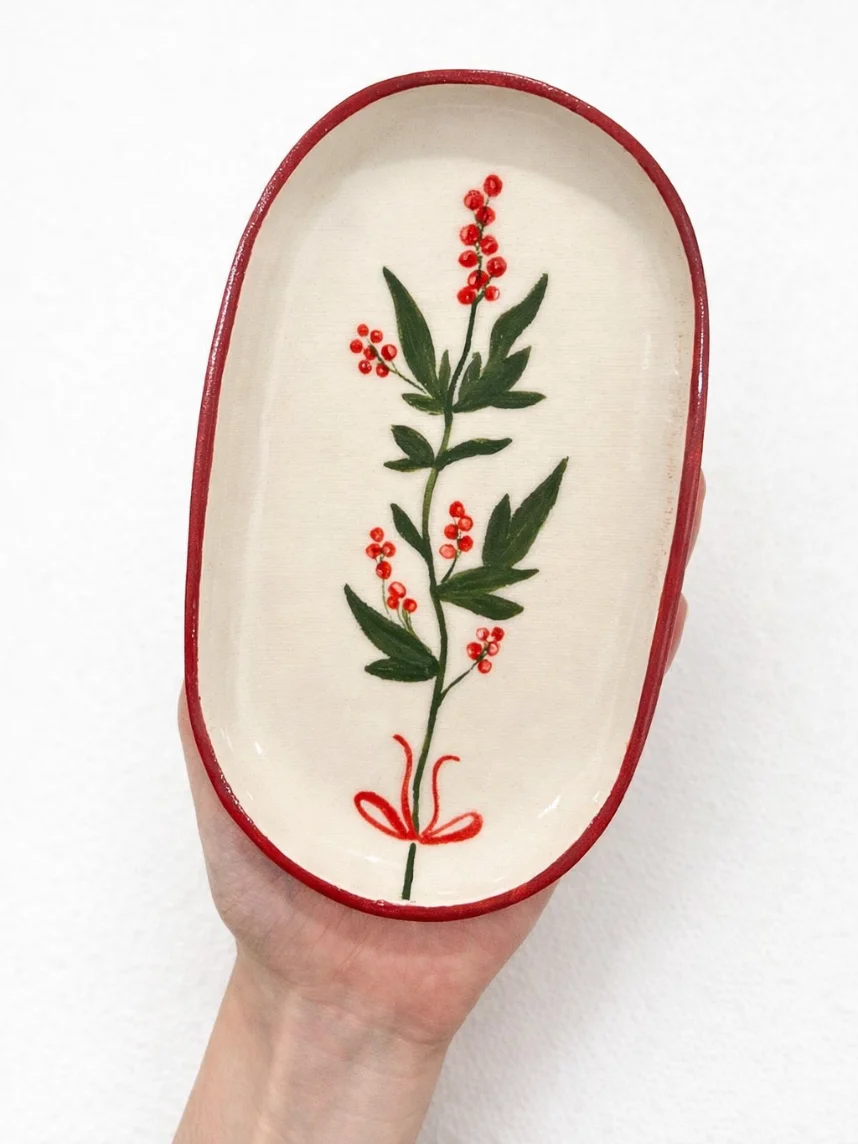Блюдце ручной работы Йеллоускуп «Остролист», керамика, 17 см