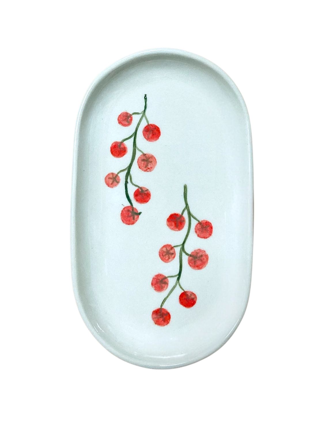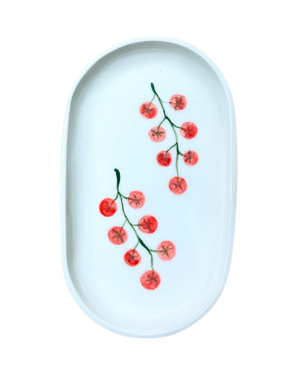 Блюдце ручной работы «Помидорки черри», керамика, 17 см