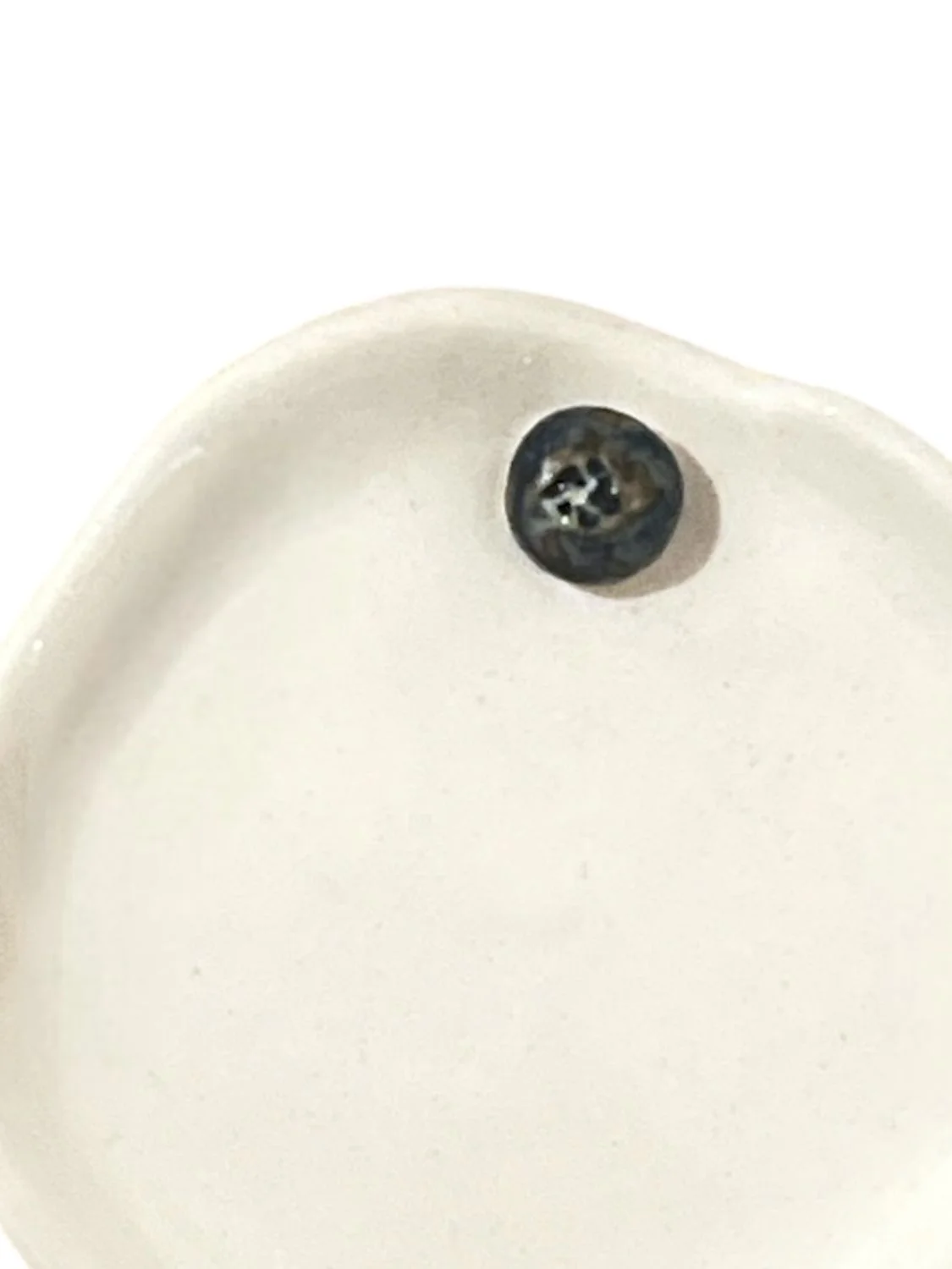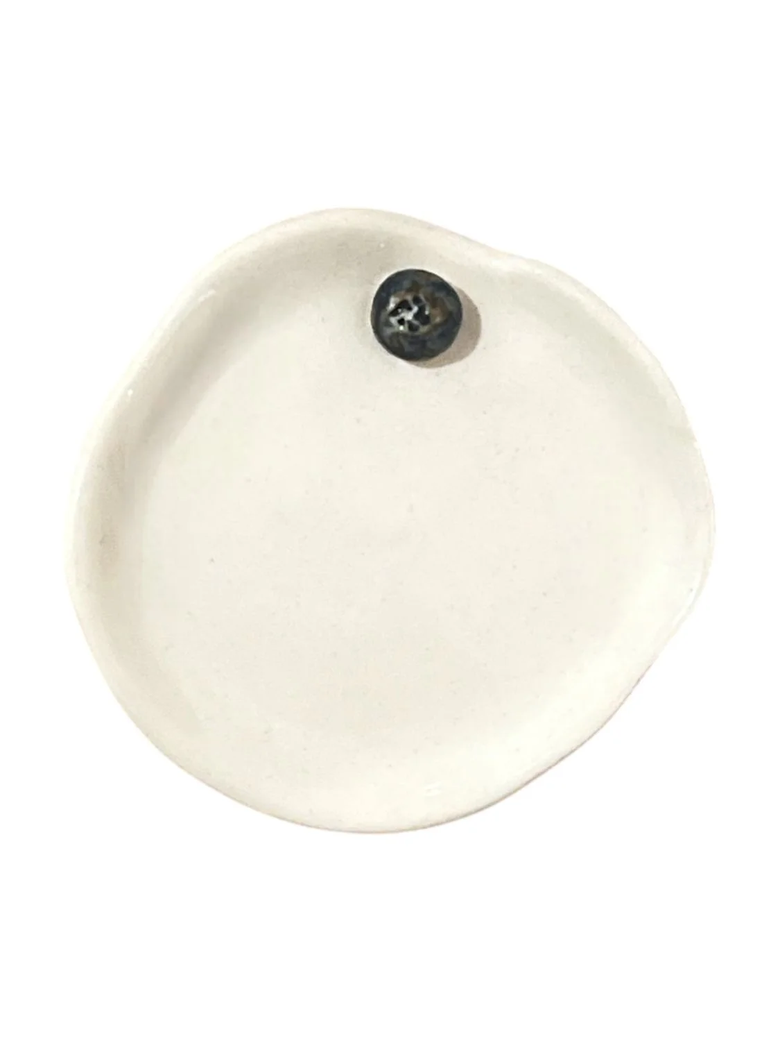 Блюдце ручной работы Катя Вебер с черникой, белое, керамика, 8 см