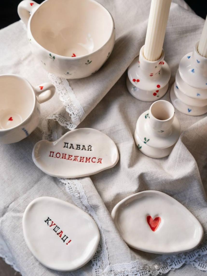 Керамическое блюдце ручной работы с надписью «Давай понежимся». Производитель - петербургская керамистка Аня Мурмыло (Keramurrr).