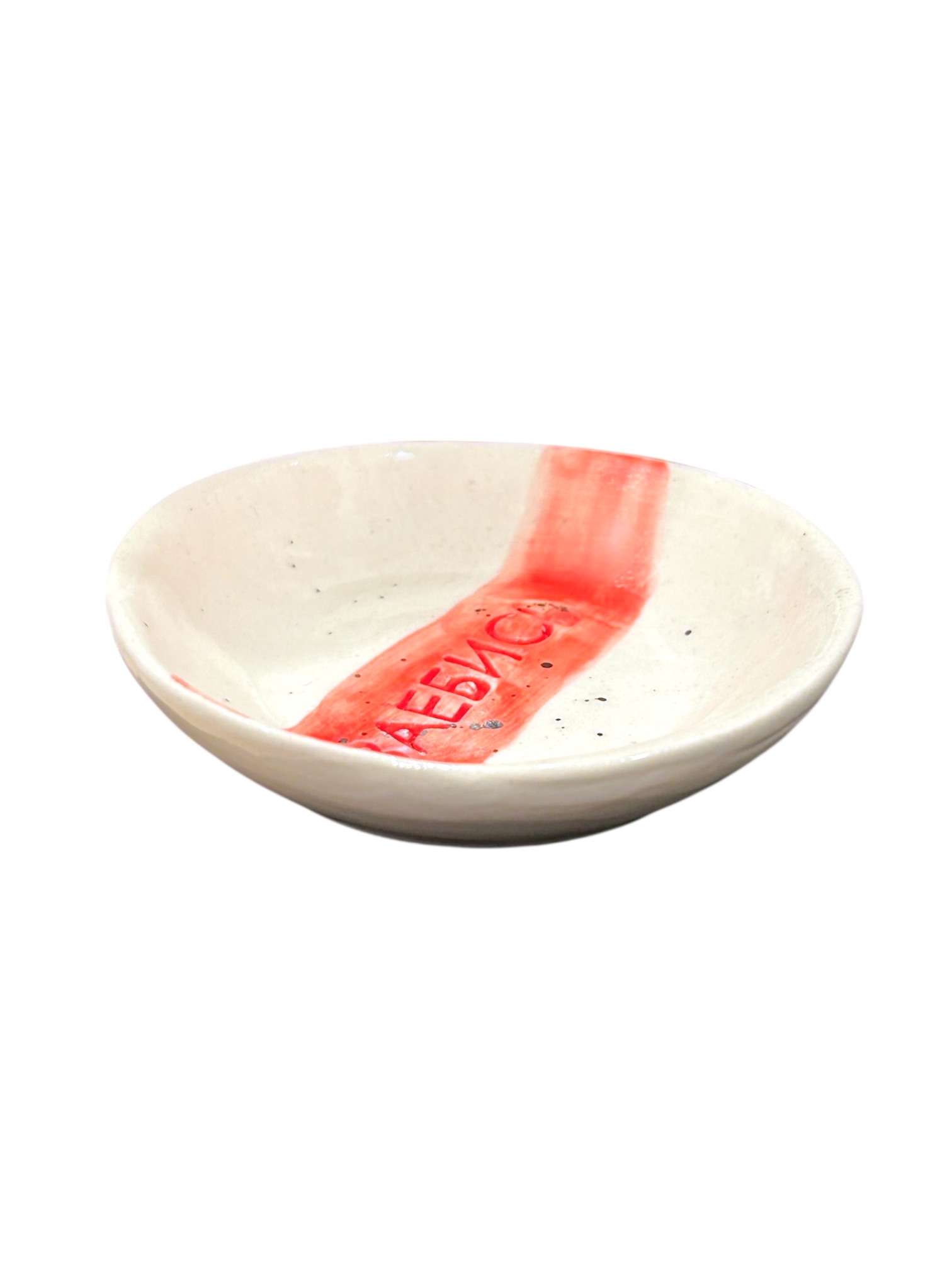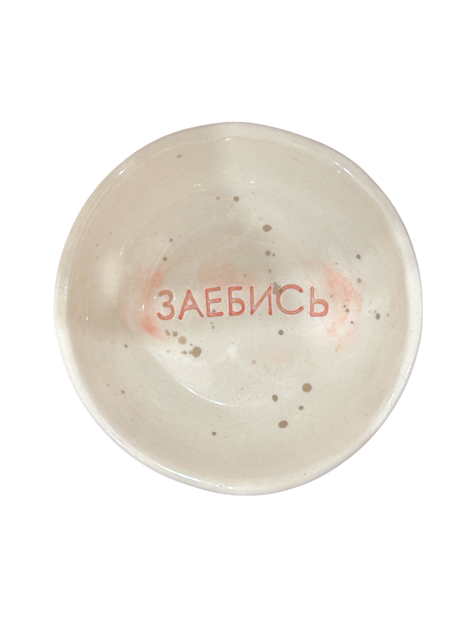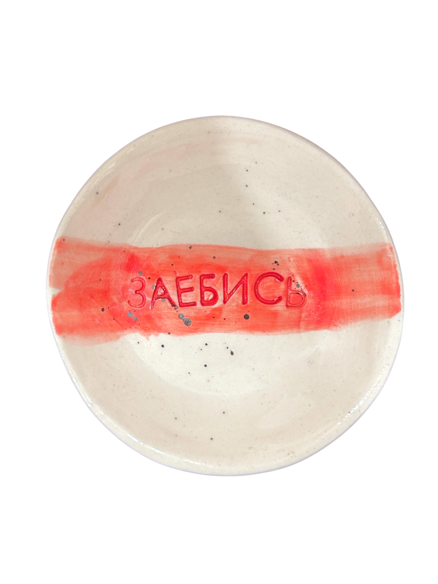 Блюдце ручной работы с надписью «Зае*ись», керамика, 10 см