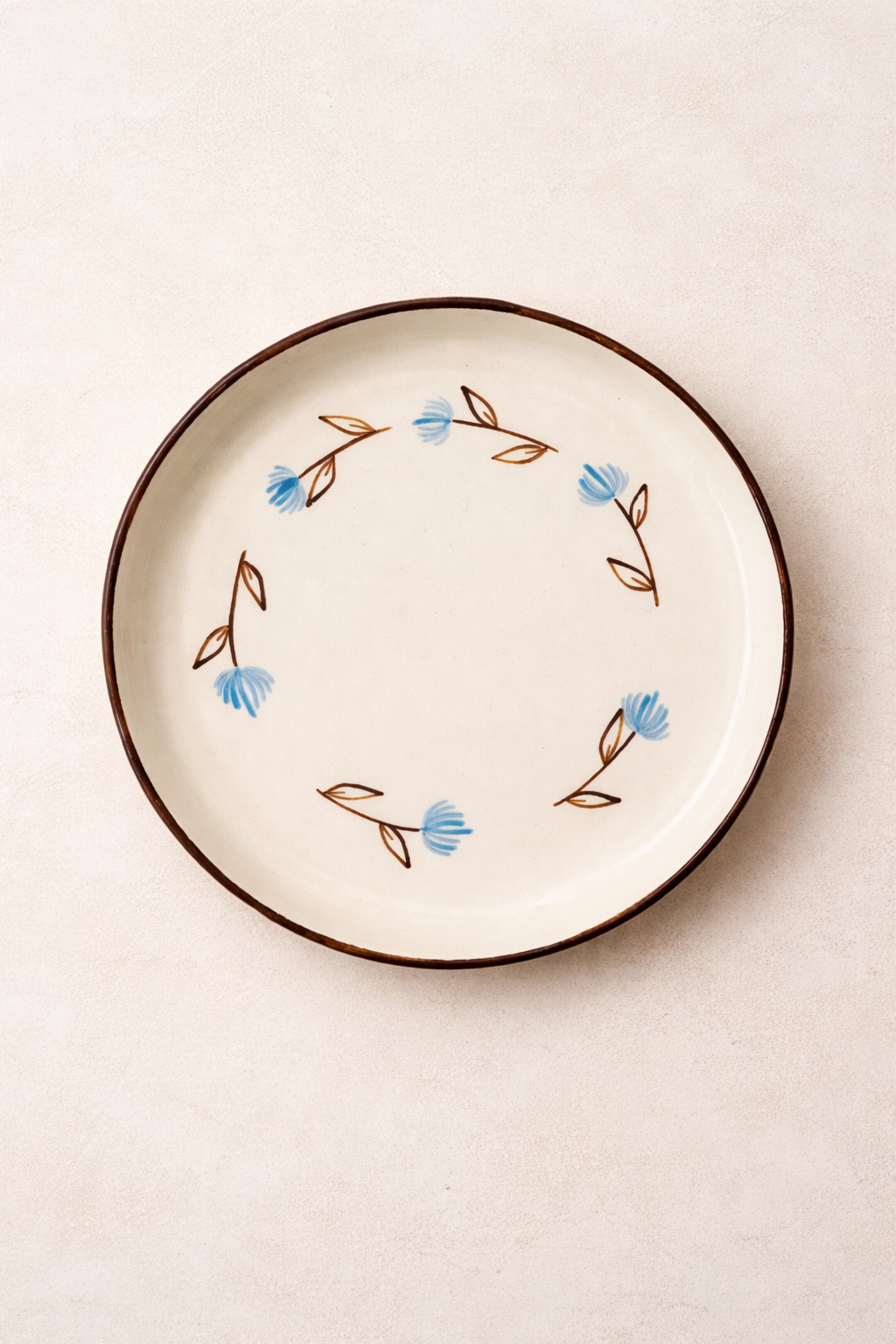 Блюдце ручной работы «Веточки», полуфарфор, 14 см