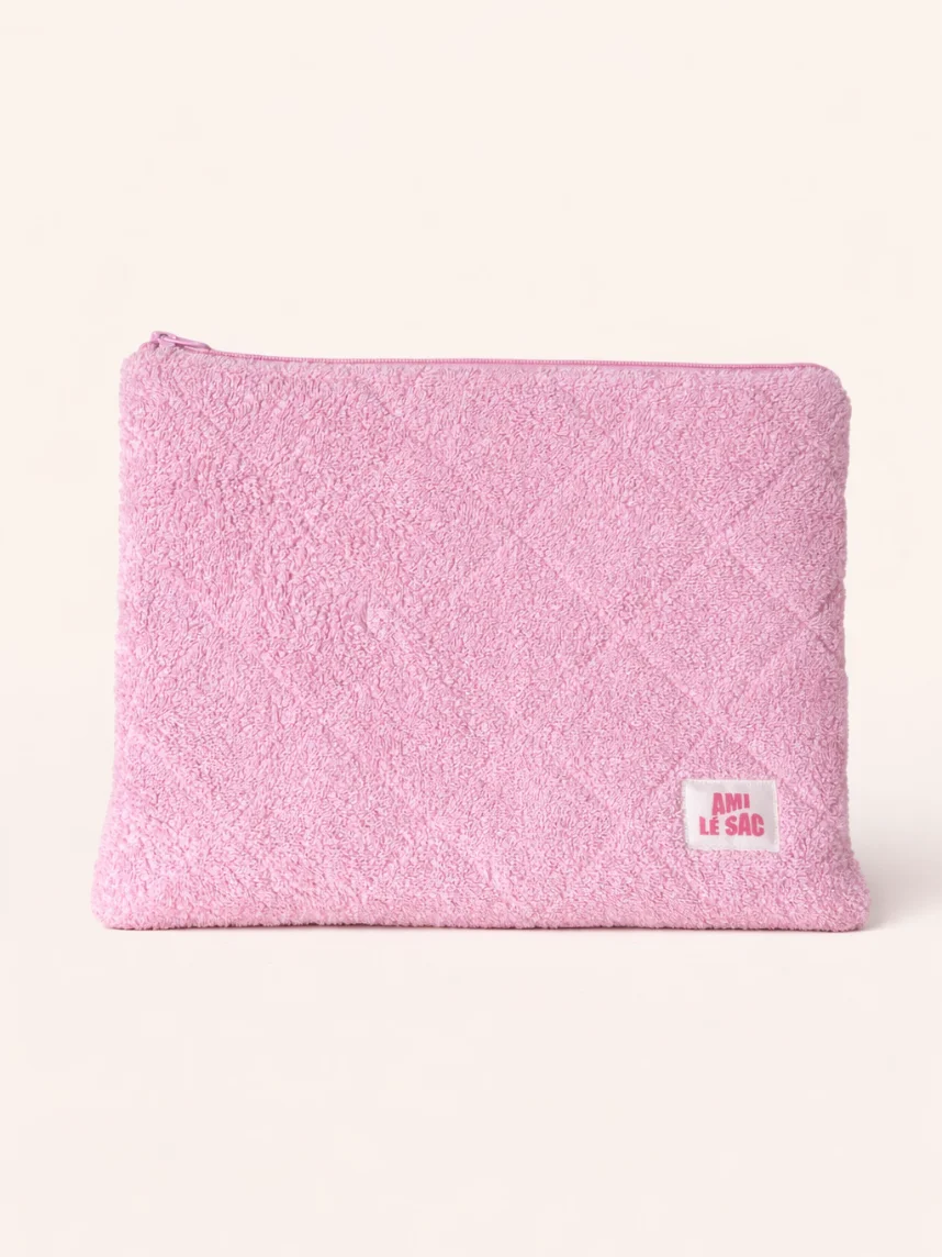 Большая косметичка ручной работы АМИ (Ami lé sac) «Кейс», розовая, махровая