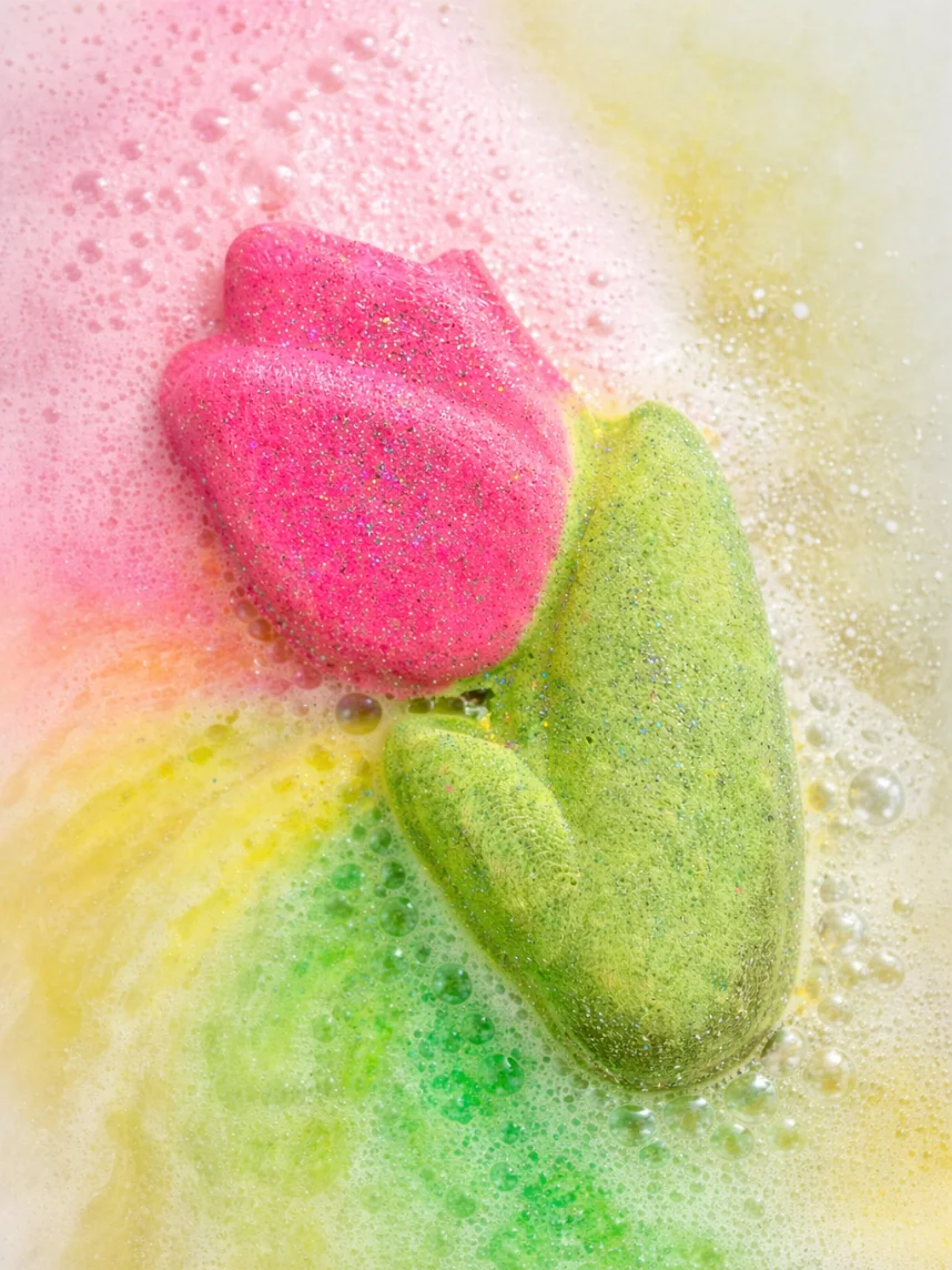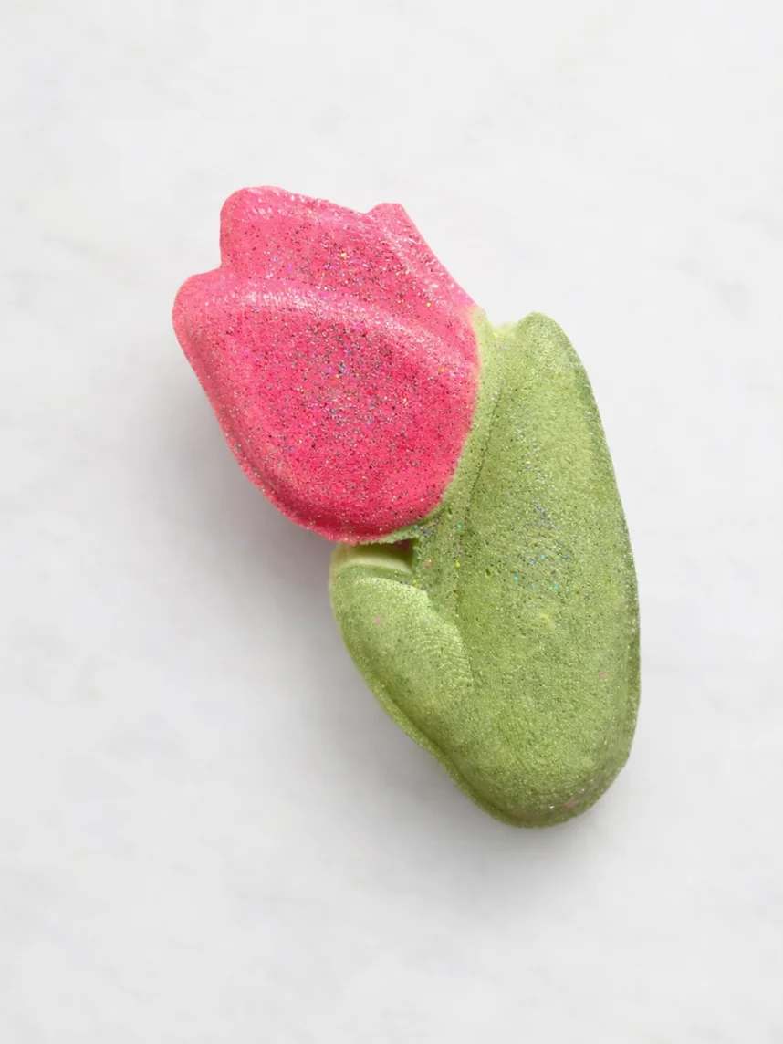 Бомбочка для ванны Nyash Nyash «Тюльпан», розовая с зеленым