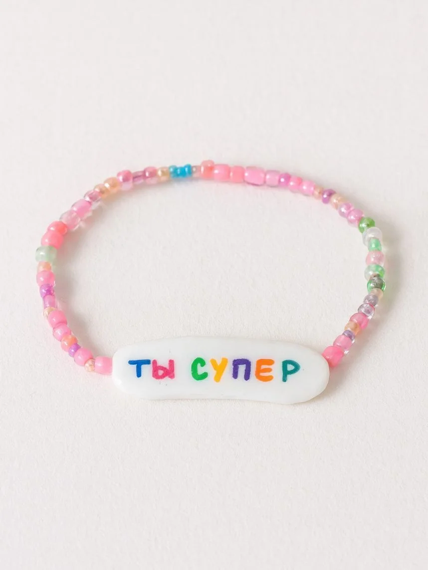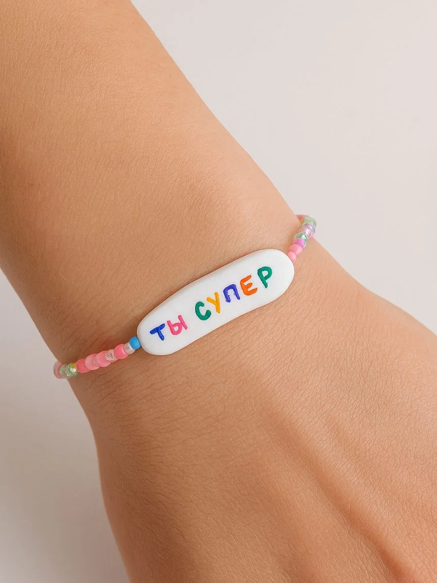 Браслет ручной работы «Ты супер», полимерная глина, бисер