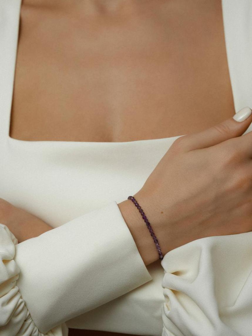Камень: аметист. Толщина нити: 0,5 мм. Размер: универсальный.