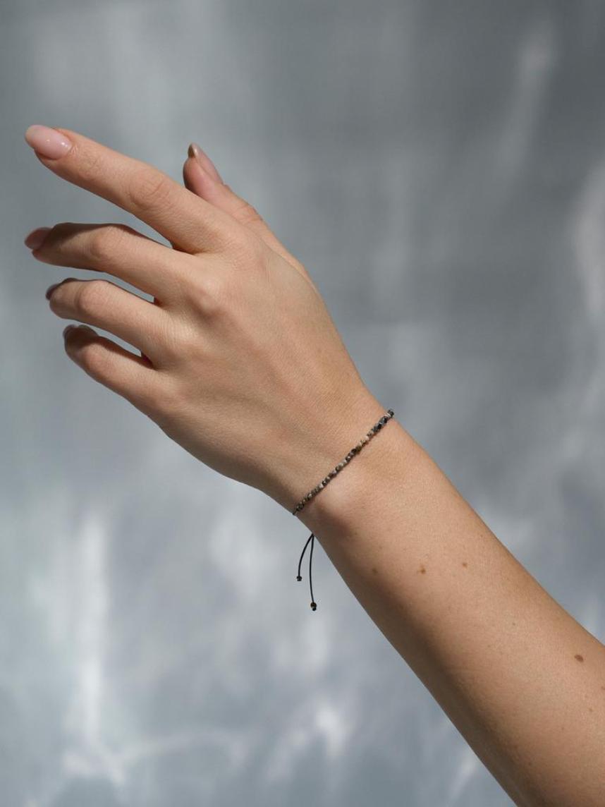 У каждого браслета на обороте есть маленькая бусина гематита – это для того, чтобы узлы не соприкасались .
