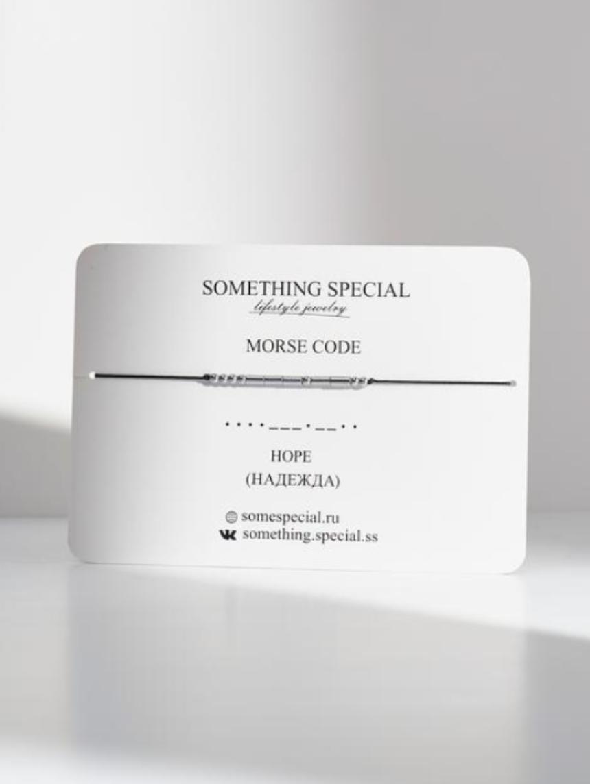 Браслет язык Морзе на чёрной нити «Надежда / Hope».