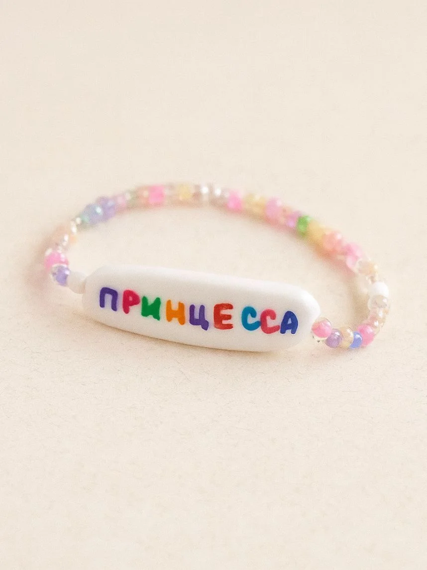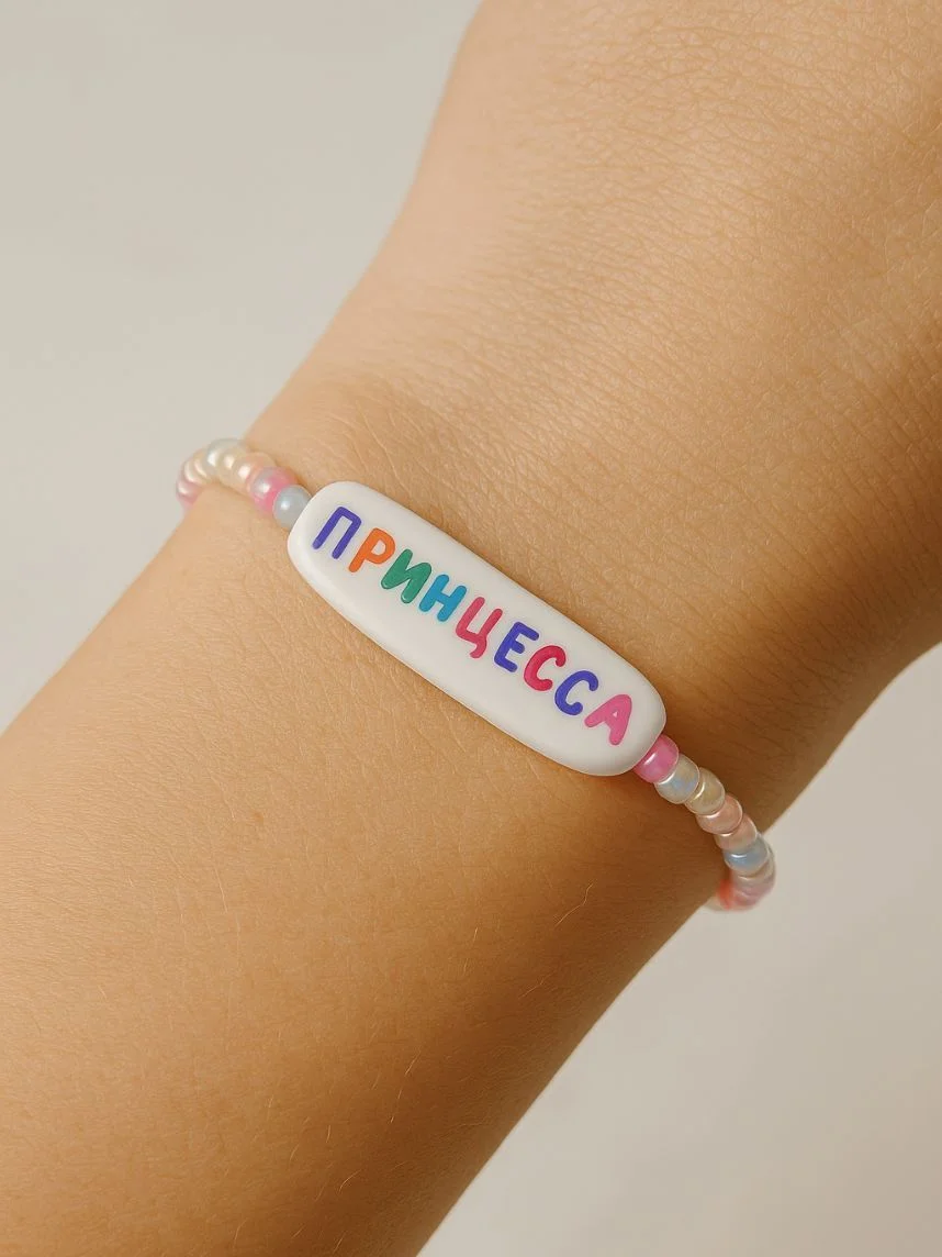 Браслет ручной работы Радость Рядом с надписью «Принцесса», полимерная глина, бисер