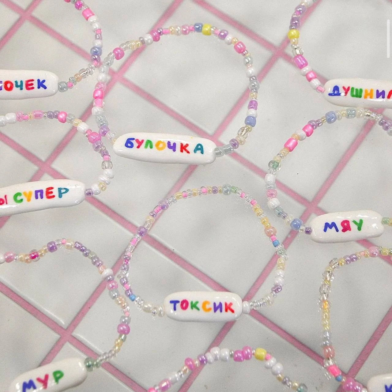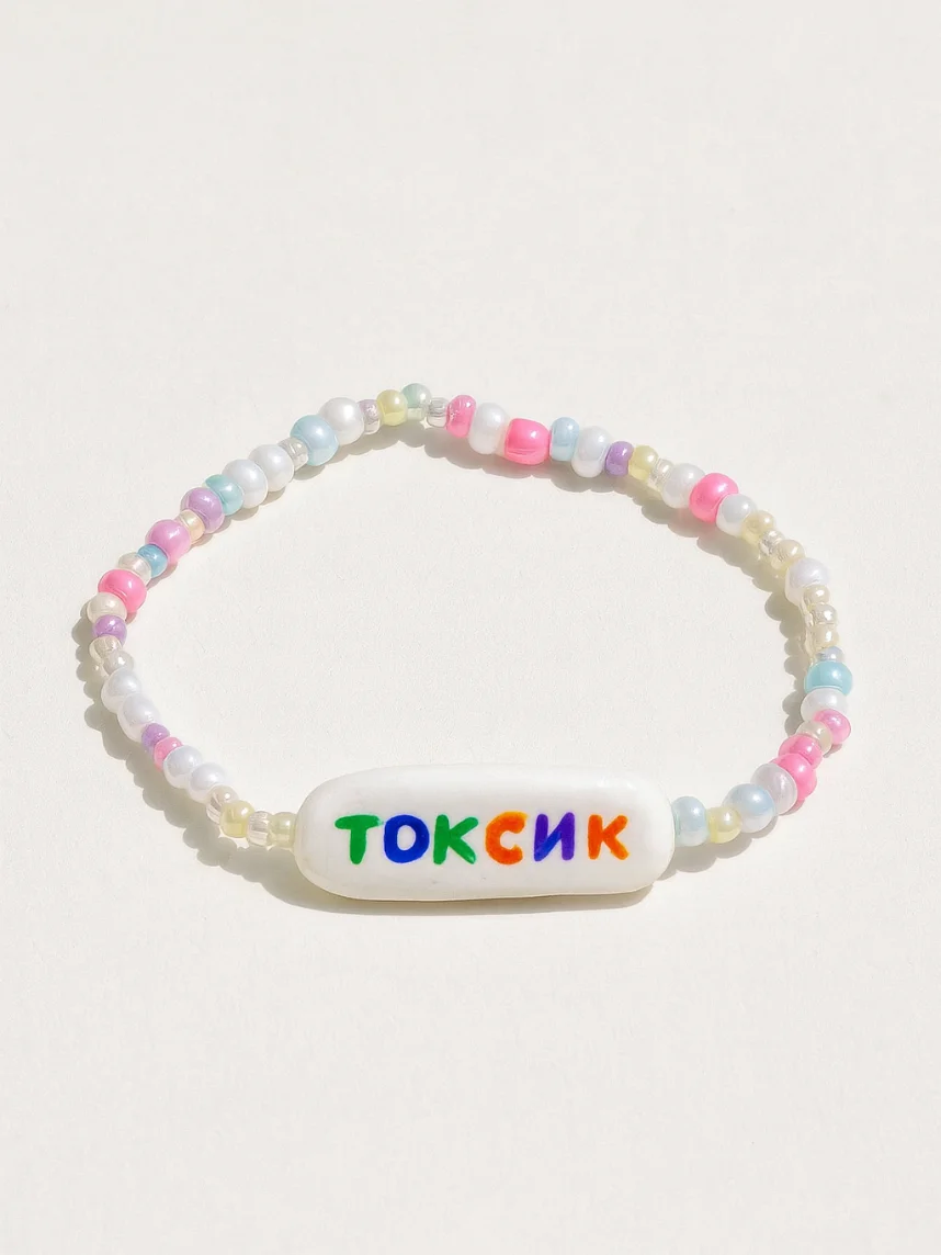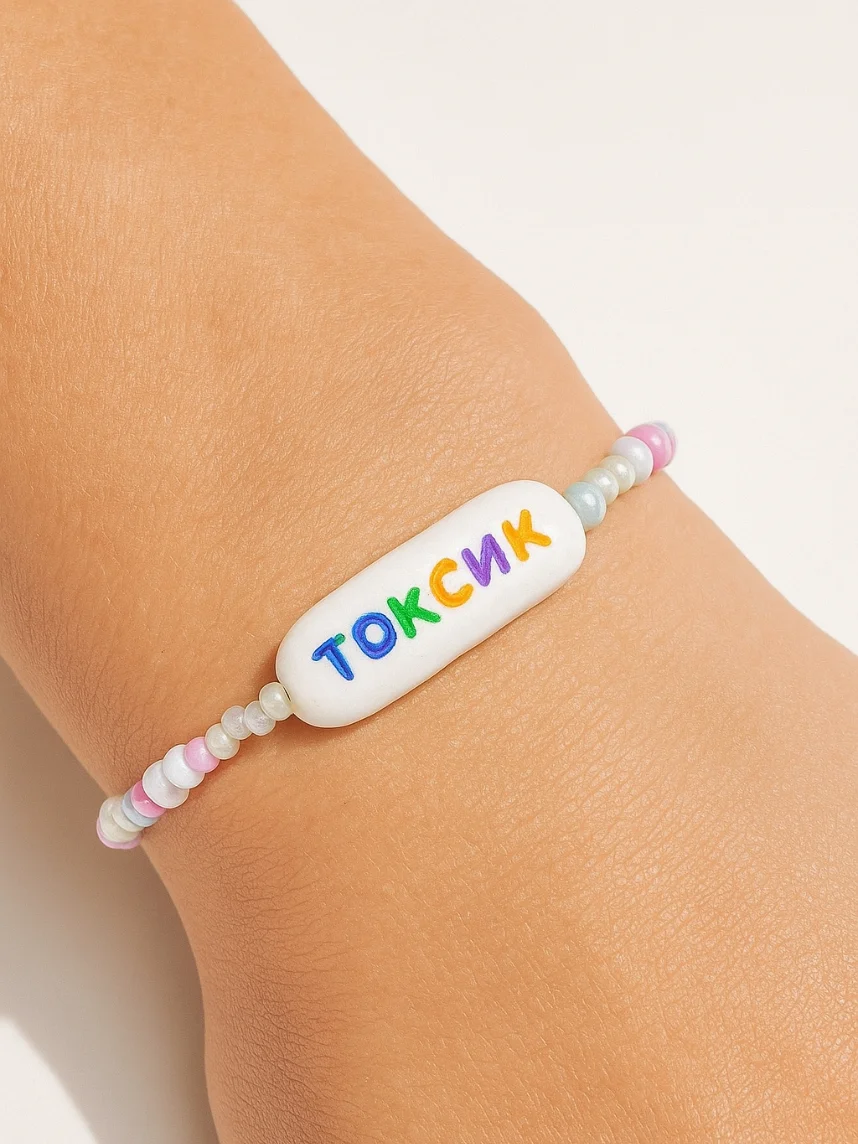 Браслет ручной работы Радость Рядом с надписью «Токсик», полимерная глина, бисер