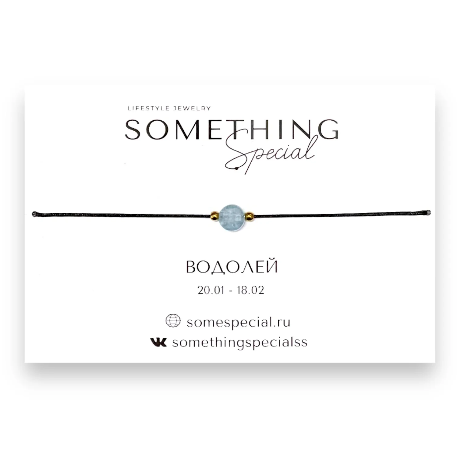 Браслет Something Special «Водолей» с аквамарином на чёрной нити