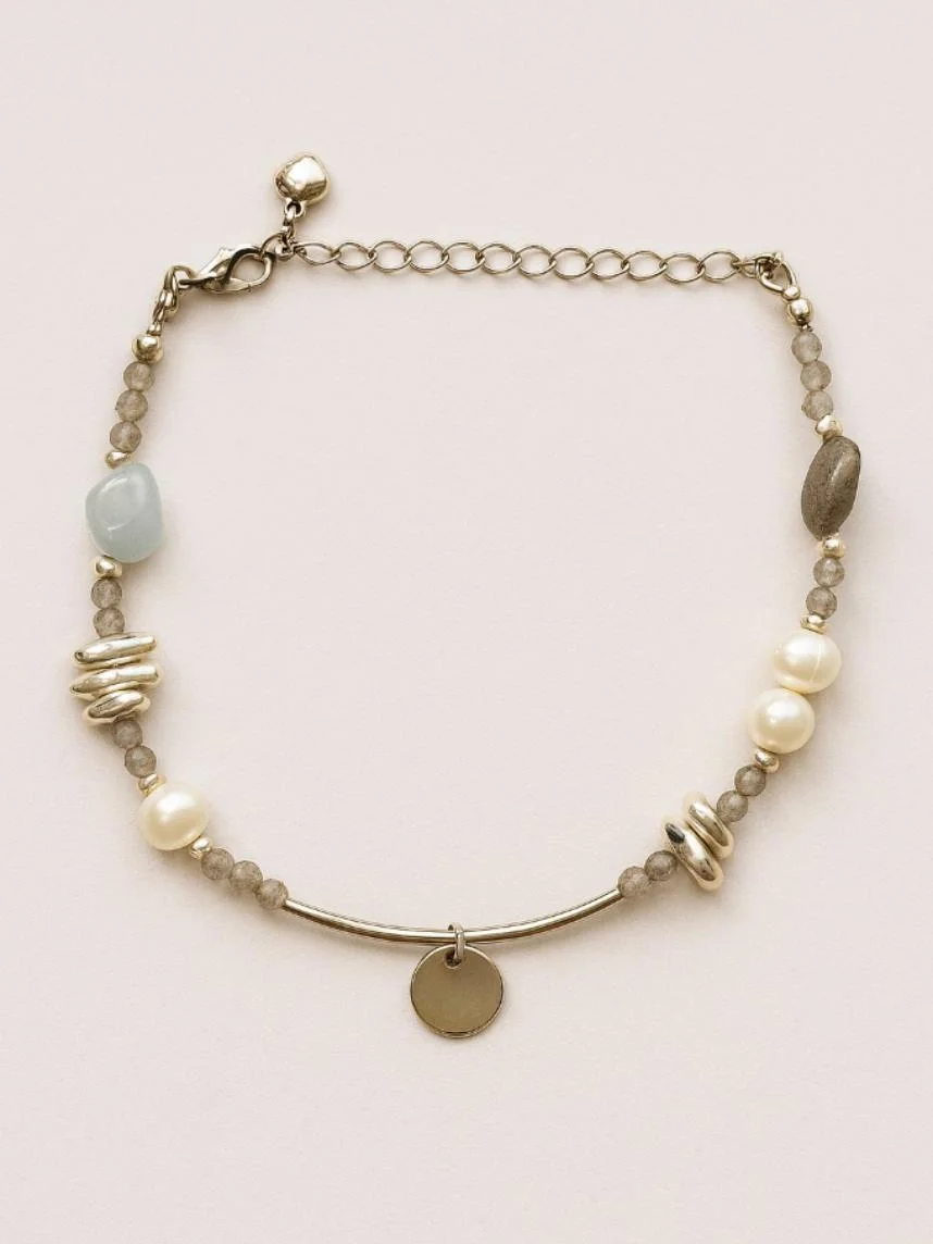 Вставка: натуральный речной жемчуг, минеральные камни (лабрадор, гематит)