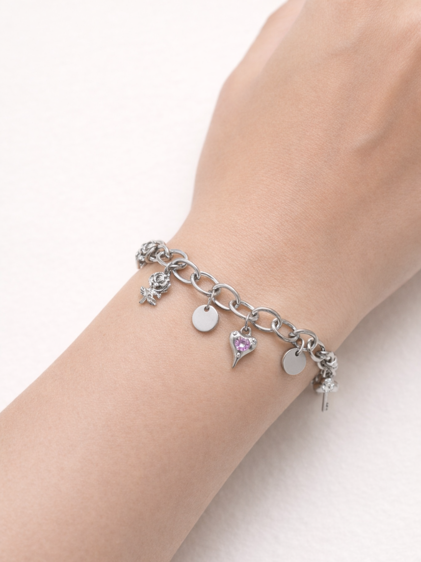 Браслет цепь с подвесами «Сердце, ключ» Migette