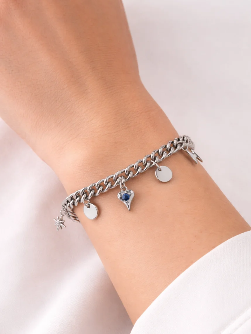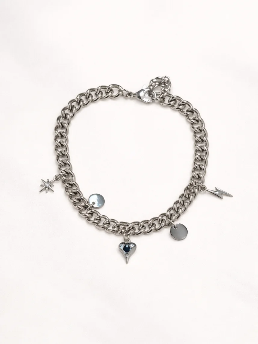 Браслет цепь с подвесами «Сердце, молния» Мигетт