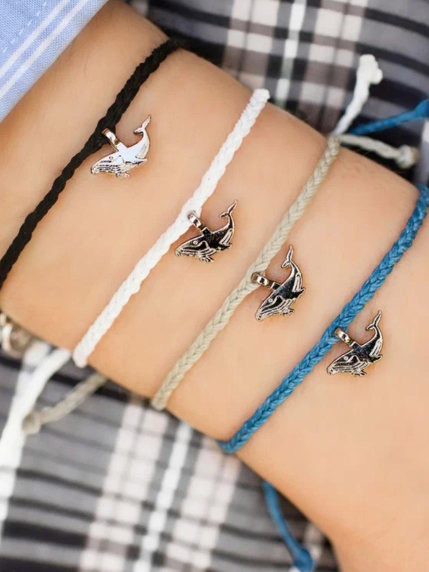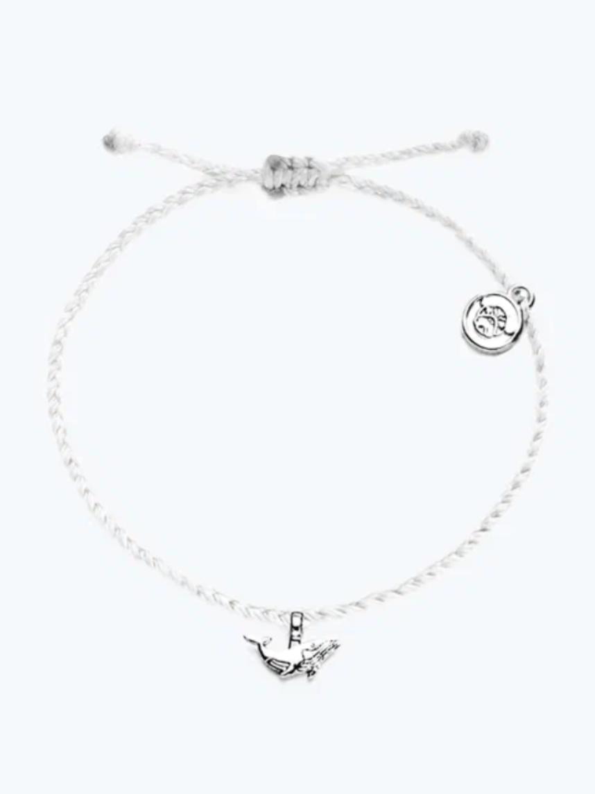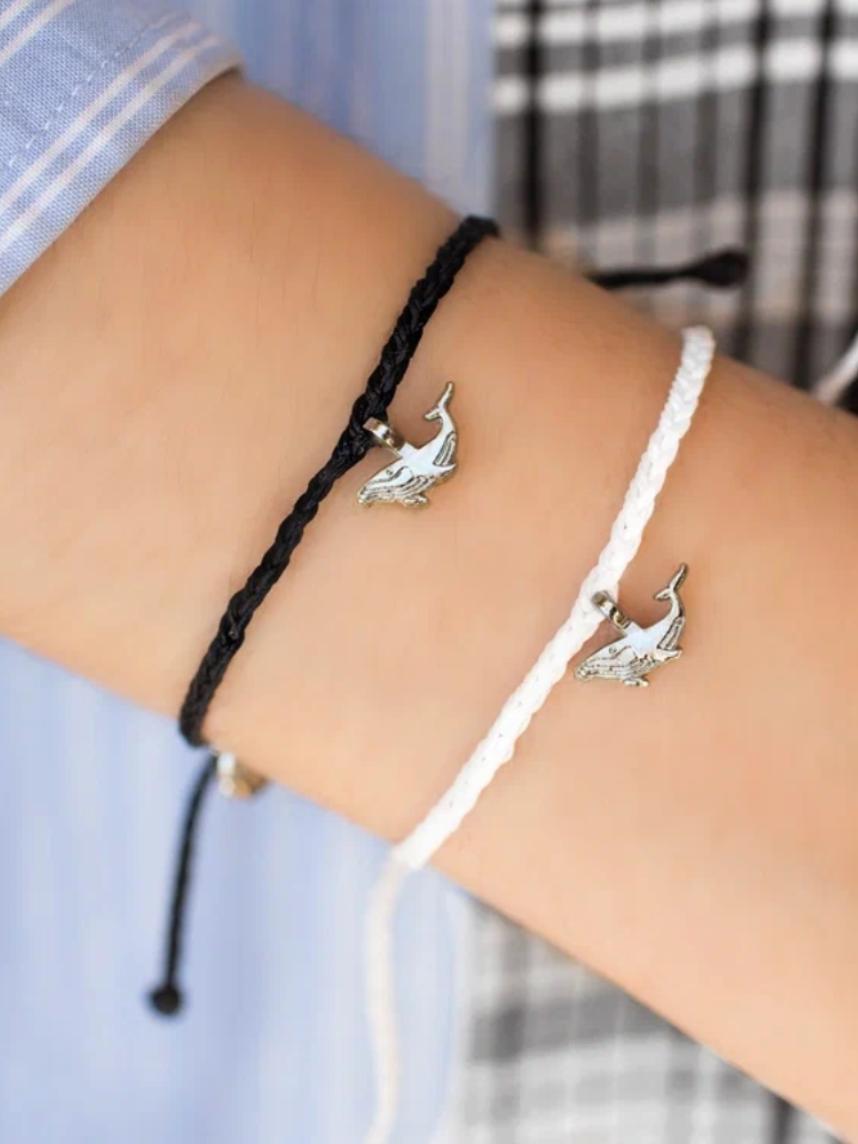 Этот браслет на белой нити с изображением кита на серебряном шарме будет отличным дополнением к любому наряду.