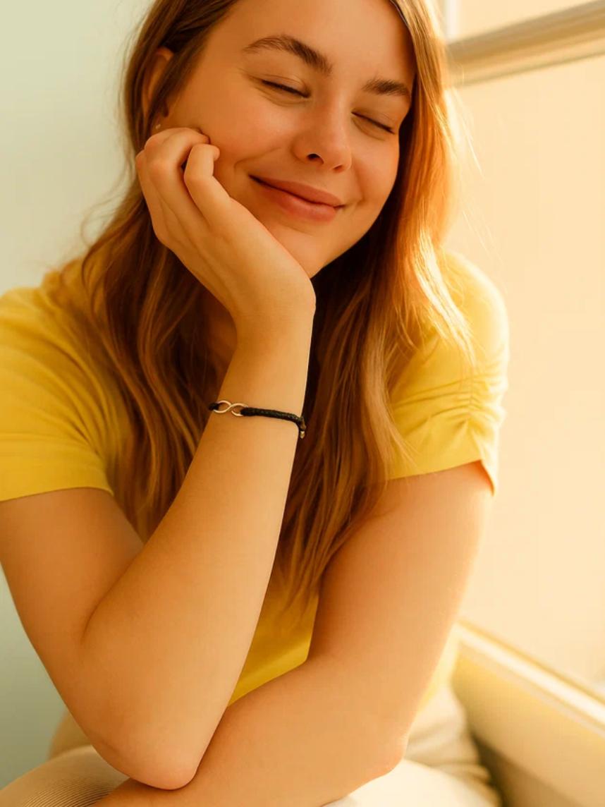 Браслет с черной нитью и серебристым шармом в форме бесконечности - это изысканный и нежный аксессуар, который идеально подойдет для того, кто ценит простоту и элегантность.
