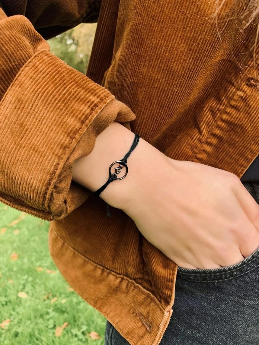 На нём крепится черный шарм с изображением гор, который подчеркнёт вашу силу духа и уверенность в себе.