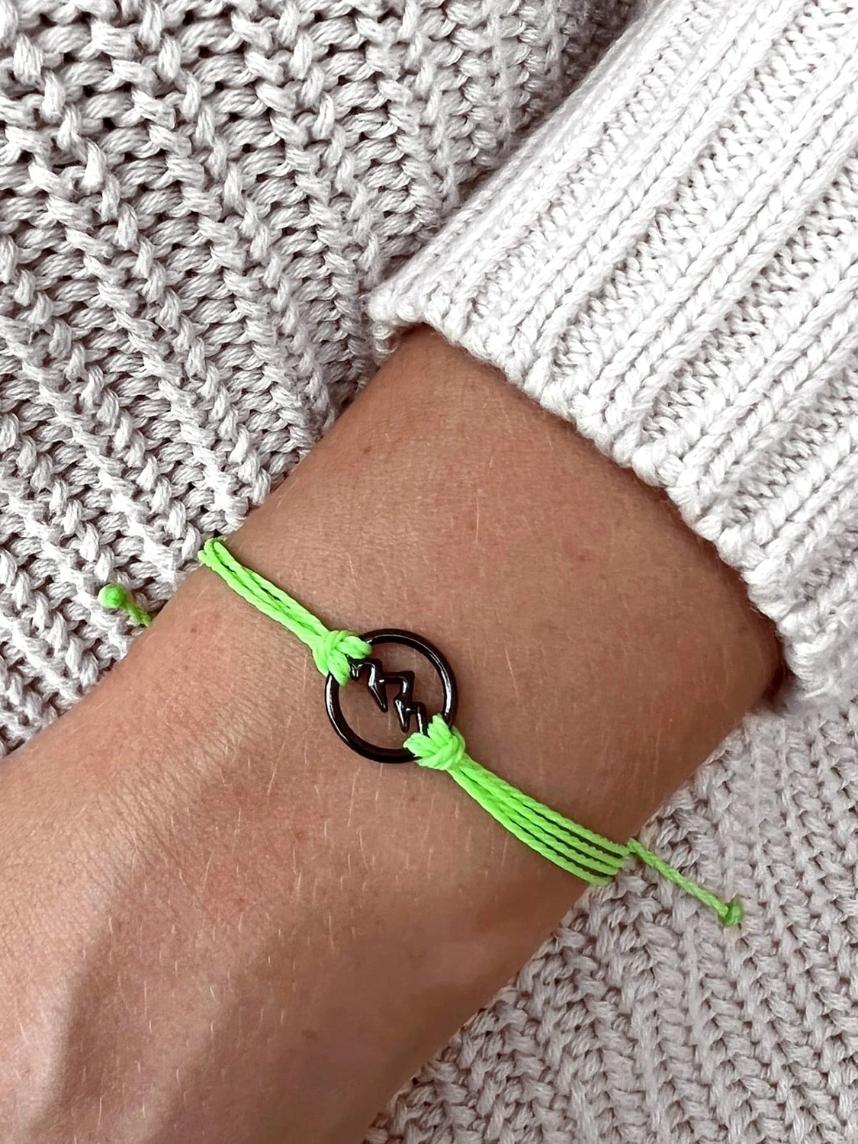 Этот браслет выполнен из салатовой нити, которая прекрасно подходит для летнего настроения.