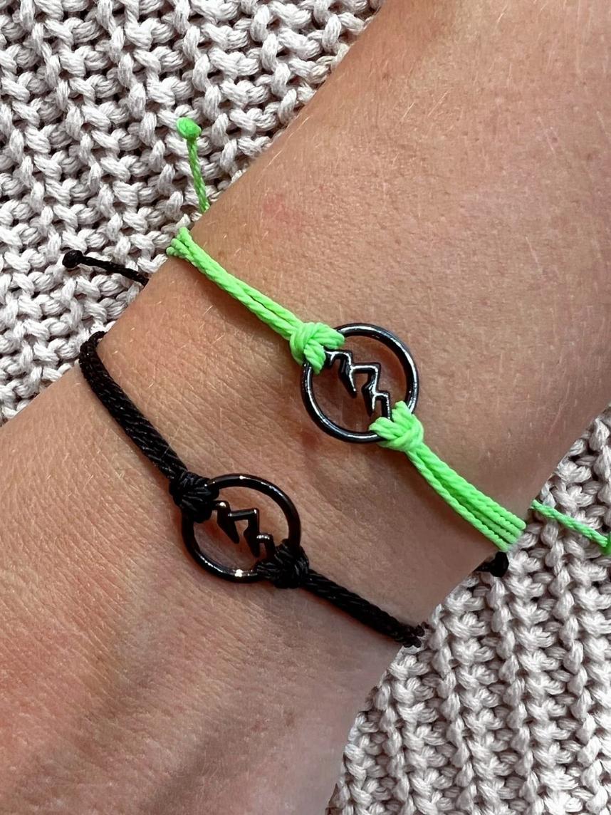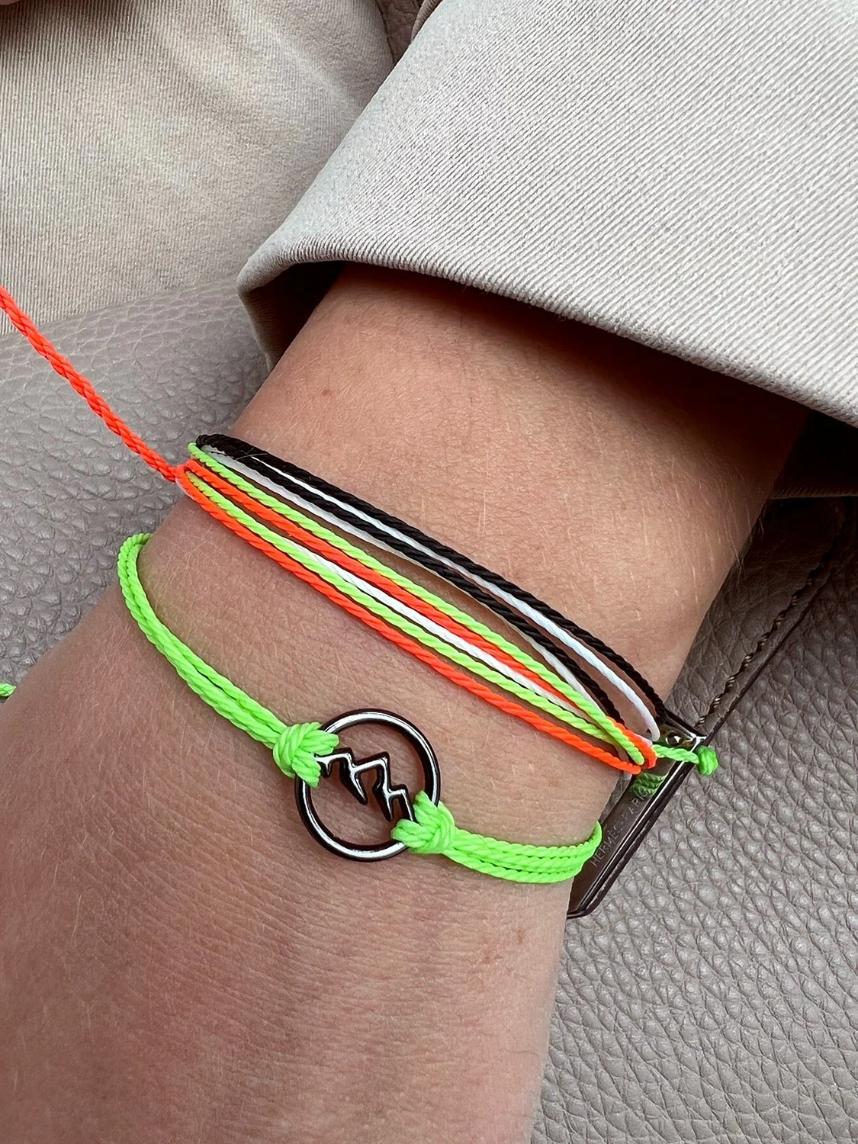 Черный цвет шарма контрастирует с яркой нитью и добавляет изюминку в дизайне браслета.