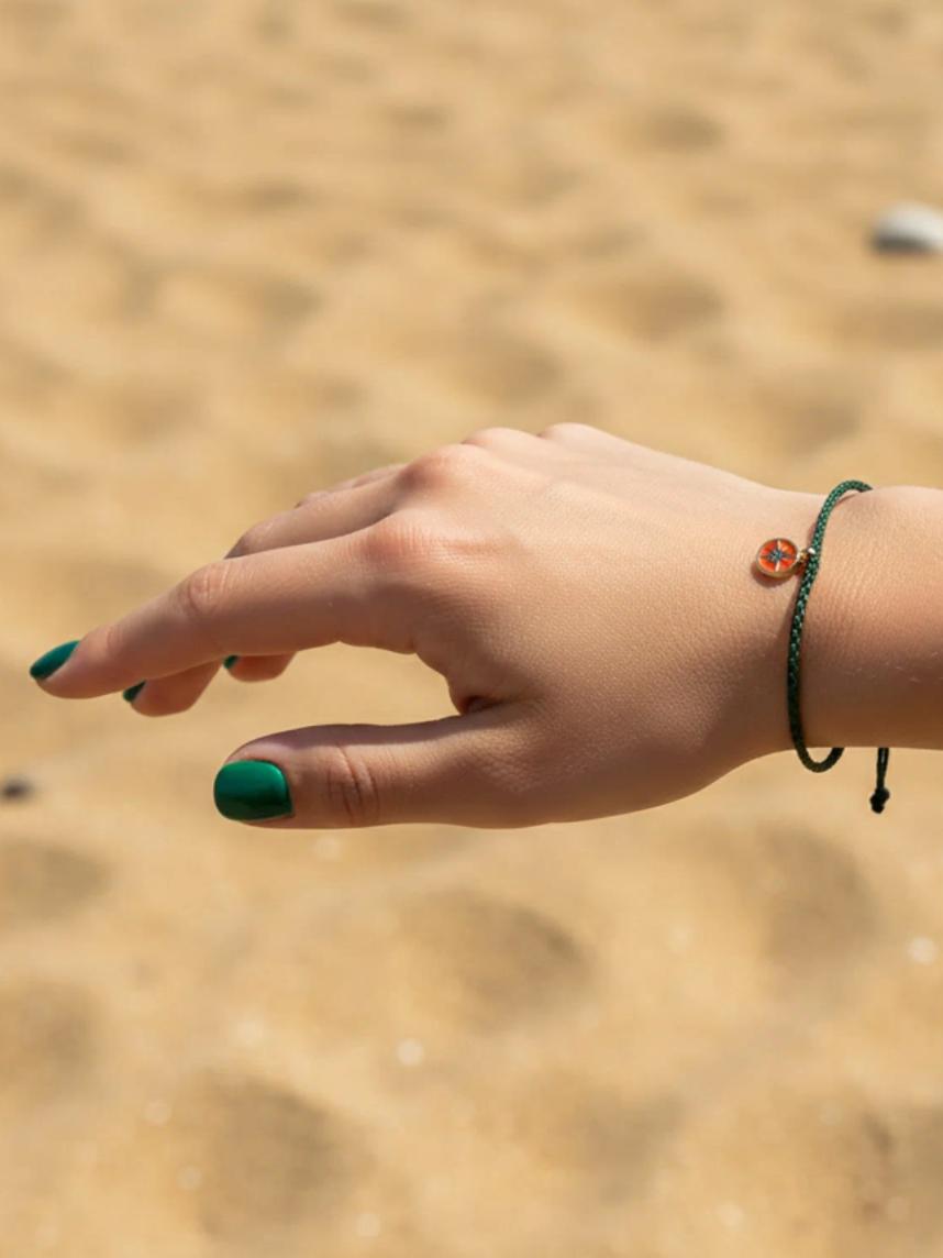 Плетёный браслет с металлическим шармом «Компас» — это маленький ориентир на руке, который помогает не сбиться с пути.