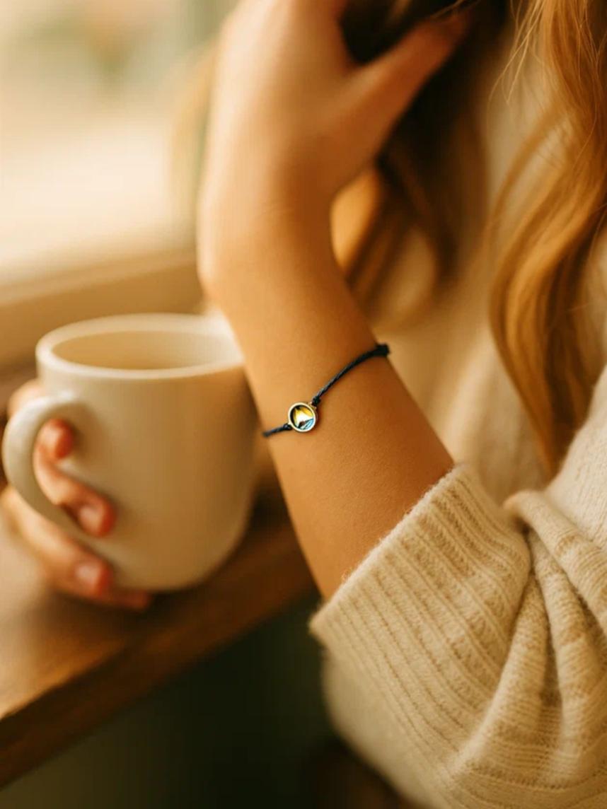Прочный шнур выдерживает ежедневную носку, браслет легко регулируется и подходит на любой размер запястья.